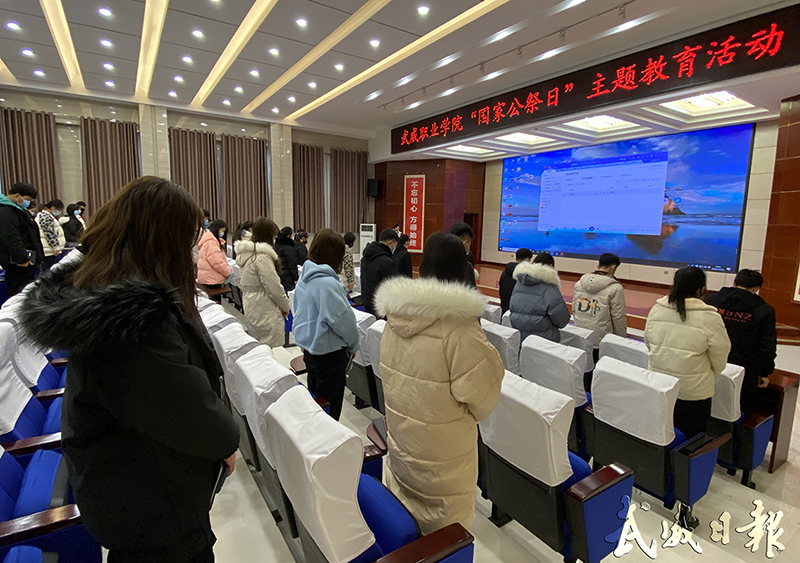 當(dāng)天各系組織開展了國家公祭日主題團(tuán)日活動。通過學(xué)習(xí)南京大屠殺相關(guān)歷史知識、講解國家公祭日設(shè)立的重大意義、進(jìn)行默哀儀式、共同宣讀《和平宣言》等形式表達(dá)對南京大屠殺遇難者的哀悼與哀思。12月14日《武威日報(bào)》刊發(fā)了我院開展國家公祭日主題教育活動新聞報(bào)道。