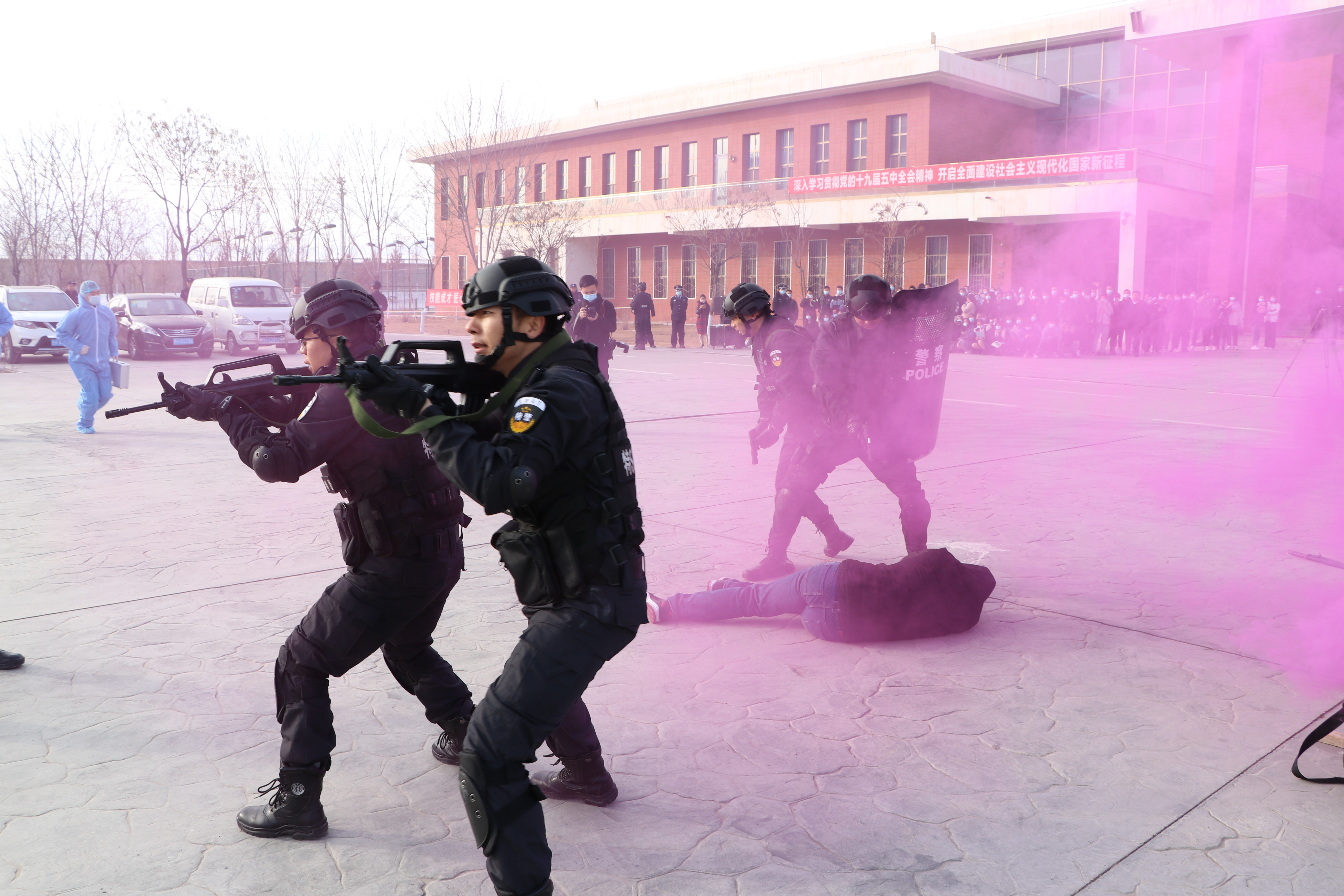 武威市反恐怖辦主任、市公安局常務(wù)副局長康威,市委宣傳部四級(jí)調(diào)研員韋國富、市教育局副局長賈玉玲、市應(yīng)急管理局副局長范鵬飛、市衛(wèi)健委副主任張芳、武威職業(yè)學(xué)院副院長王守云、市公安局副局長、涼州區(qū)反恐怖工作領(lǐng)導(dǎo)小組副組長、涼州區(qū)公安局局長劉武德出席了本次活動(dòng)。涼州區(qū)相關(guān)單位反恐工作負(fù)責(zé)同志及市、區(qū)公安機(jī)關(guān)相關(guān)警種、消防救援支隊(duì)隊(duì)員、武威市人民醫(yī)院醫(yī)務(wù)人員及學(xué)院師生300余人參加啟動(dòng)儀式。
