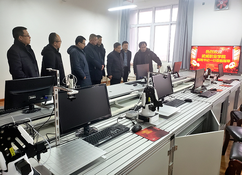 在韓九強(qiáng)團(tuán)隊(duì)實(shí)驗(yàn)室,工作小組聆聽(tīng)了韓九強(qiáng)教授視頻講座,并實(shí)地考察交流了人工智能技術(shù)發(fā)展。趙明就高職院校人工智能相關(guān)專(zhuān)業(yè)開(kāi)設(shè)與專(zhuān)業(yè)發(fā)展前景同韓九強(qiáng)進(jìn)行了深入交流。