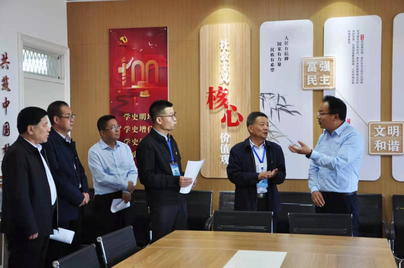 關(guān)維斌來到能源科技樓1樓觀看學(xué)院展板,聽取學(xué)院黨委書記、院長(zhǎng)趙明匯報(bào)介紹校黨建工作和學(xué)科建設(shè)成就。在能源工程系黨員活動(dòng)室、創(chuàng)新創(chuàng)業(yè)中心、馬克思主義學(xué)院與師生交流互動(dòng),并盛情邀請(qǐng)?jiān)撛厚R克思主義學(xué)院學(xué)科帶頭教師為市委組織部干部講授黨史。