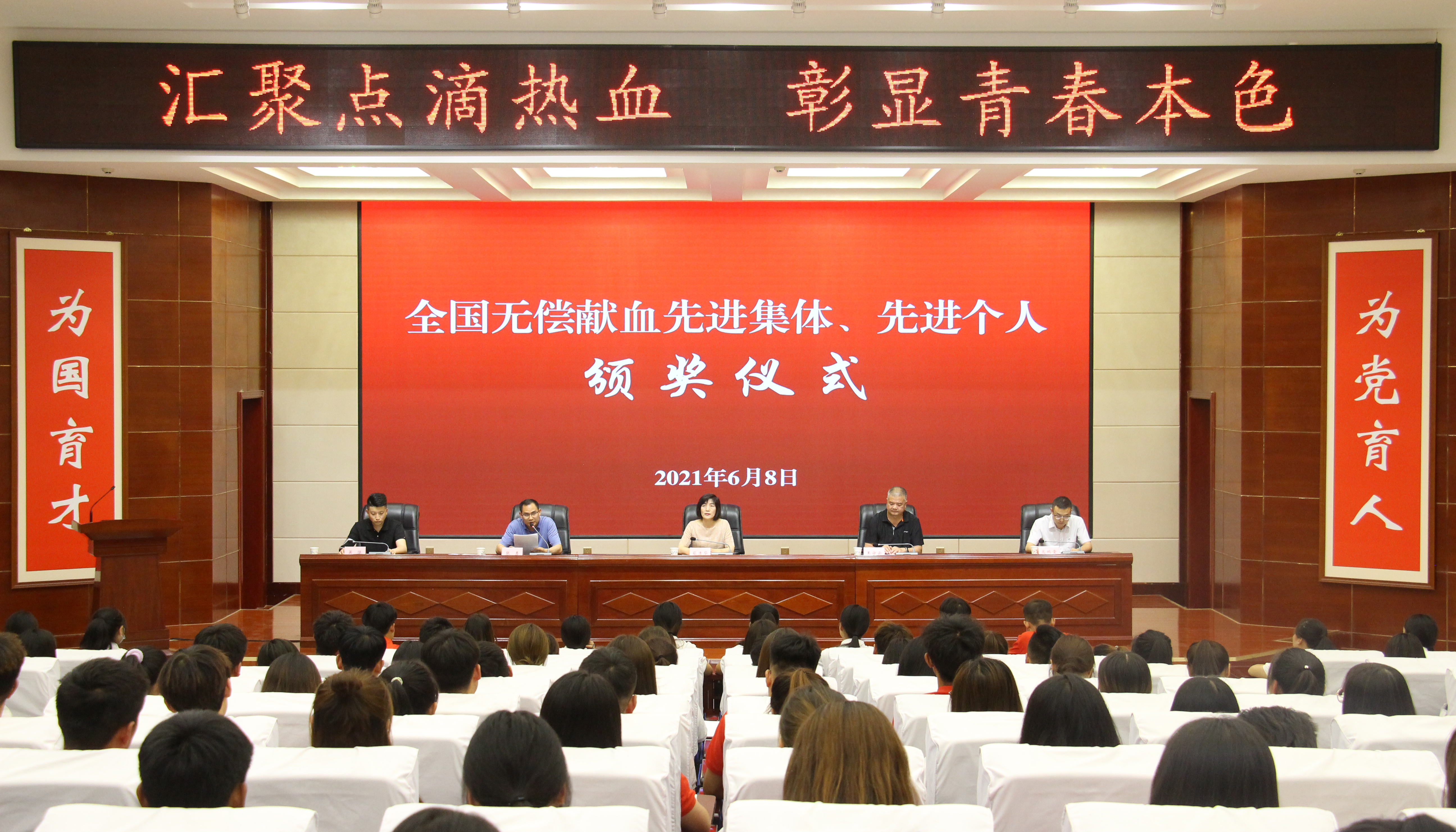 6月8日下午,武威市中心血站、武威市紅十字會在學(xué)院菁英廳召開全國無償獻(xiàn)血先進(jìn)集體、先進(jìn)個人頒獎儀式。武威市中心血站站長蔡清華,武威市紅十字會專職副會長張勇,學(xué)院黨委委員、副院長王守云出席頒獎儀式,學(xué)院獻(xiàn)血志愿者代表220人參加活動。儀式由學(xué)生工作處、院團(tuán)委負(fù)責(zé)人高鵬堂主持。