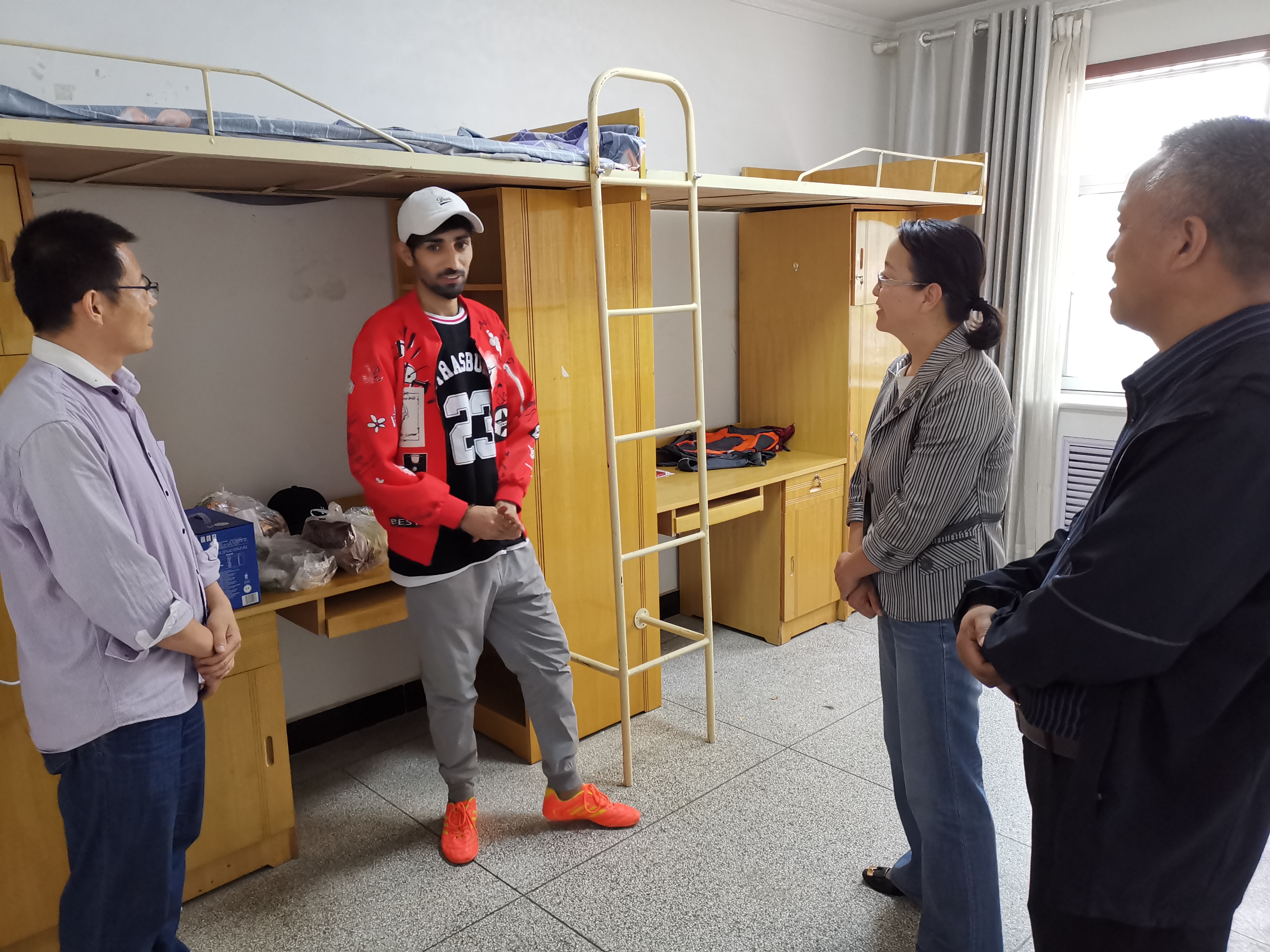 田迎春先后深入2019級(jí)、2021級(jí)來(lái)華留學(xué)生宿舍、廚房,查看、了解留學(xué)生住宿、生活情況,向留學(xué)生送上慰問(wèn)品。在留學(xué)生宿舍,田迎春與留學(xué)生親切交談,關(guān)切詢問(wèn)留學(xué)生日常生活、專(zhuān)業(yè)學(xué)習(xí)、漢語(yǔ)學(xué)習(xí)等情況。她向留學(xué)生簡(jiǎn)要介紹了中秋節(jié)、國(guó)慶節(jié)的來(lái)歷、風(fēng)俗及意義,留學(xué)生們對(duì)中國(guó)傳統(tǒng)文化表現(xiàn)出濃厚興趣;她指出,留學(xué)生背井離鄉(xiāng)來(lái)華求學(xué),遇到困難在所難免,但要堅(jiān)定信心,學(xué)院會(huì)盡力滿足留學(xué)生學(xué)習(xí)、生活的需要;她鼓勵(lì)留學(xué)生積極主動(dòng)融入學(xué)院大家庭,廣交朋友,在融入、融合過(guò)程中體會(huì)在華學(xué)習(xí)生活的樂(lè)趣;她希望留學(xué)生珍惜寶貴的來(lái)華學(xué)習(xí)的機(jī)會(huì),不僅要學(xué)好理論知識(shí),而且要學(xué)好操作技能,不僅要學(xué)好專(zhuān)業(yè)知識(shí),而且要學(xué)好優(yōu)秀中華文化,講好中國(guó)故事,向世界展示真實(shí)的中國(guó),爭(zhēng)做知華友華愛(ài)華的留學(xué)生,爭(zhēng)做中國(guó)與世界各國(guó)友好的使者。