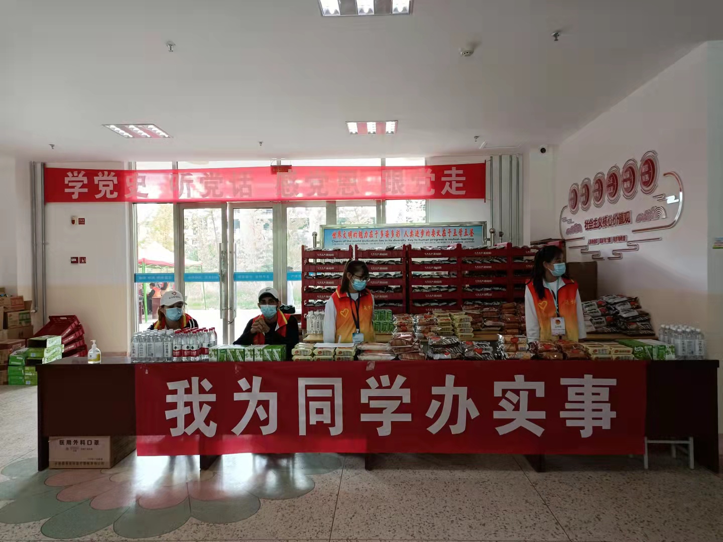 為做好校園閉環(huán)式管理,確保全院師生的健康安全,學(xué)院花費20多萬元,委托學(xué)院聯(lián)防聯(lián)控共建單位甘肅省武威腫瘤醫(yī)院為入校學(xué)生在經(jīng)緯樓進(jìn)行核酸檢測,并在等待檢測結(jié)果期間為同學(xué)們發(fā)放牛奶、面包、餅干、純凈水等食物,確保新生安心入校。經(jīng)濟管理系招募50名師生進(jìn)行服務(wù)保障工作。