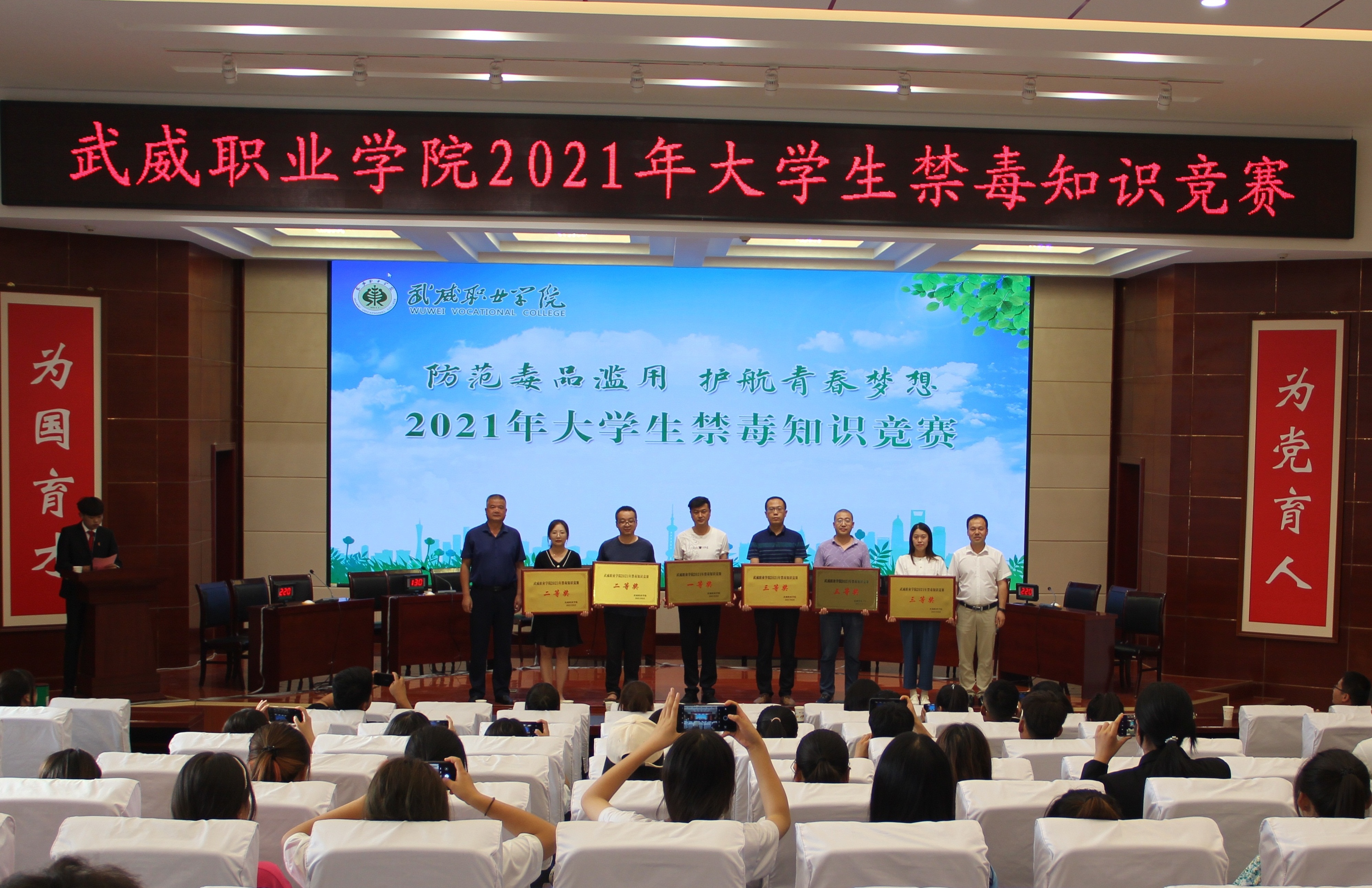 此次大學(xué)生禁毒知識競賽活動6月上旬啟動,經(jīng)過各教學(xué)院系初賽、學(xué)院復(fù)賽,共有6支參賽隊進(jìn)入決賽。決賽設(shè)必答題、搶答題、風(fēng)險題三個環(huán)節(jié),內(nèi)容涵蓋毒品基礎(chǔ)知識、毒品的危害、如何預(yù)防毒品知識、禁毒法律法規(guī)以及青少年毒品預(yù)防教育“6·27”工程等。經(jīng)過激烈角逐,醫(yī)學(xué)技術(shù)與信息管理系代表隊獲得一等獎,汽車工程系代表隊、藥學(xué)系代表隊獲得二等獎,機械制造系代表隊、現(xiàn)代農(nóng)業(yè)技術(shù)系代表隊和電子信息工程系代表隊獲得三等獎。