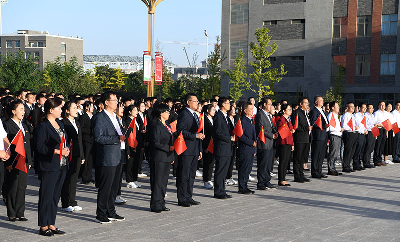 奮斗正當(dāng)時(shí),青春獻(xiàn)給黨!為慶祝新中國(guó)成立72周年,深入貫徹落實(shí)習(xí)近平總書(shū)記在慶祝建黨成立100周年大會(huì)上的重要講話精神,引導(dǎo)全院廣大青年大力弘揚(yáng)以愛(ài)國(guó)主義為核心的偉大民族精神,10月1日早上,學(xué)院在圖書(shū)館前廣場(chǎng)舉辦“請(qǐng)黨放心,強(qiáng)國(guó)有我”主題升國(guó)旗儀式。學(xué)院全體院領(lǐng)導(dǎo)、中層干部代表、師生代表300余人參加活動(dòng)。