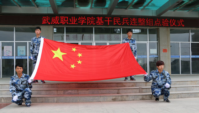 2016年5月5日下午5時,伴隨嘹亮的中華人民共和國國歌聲的響起,面對鮮艷的中華人民共和國國旗,武威職業(yè)學院基干民兵連整組點驗儀式在學院尚德樓北廣場隆重舉行。
