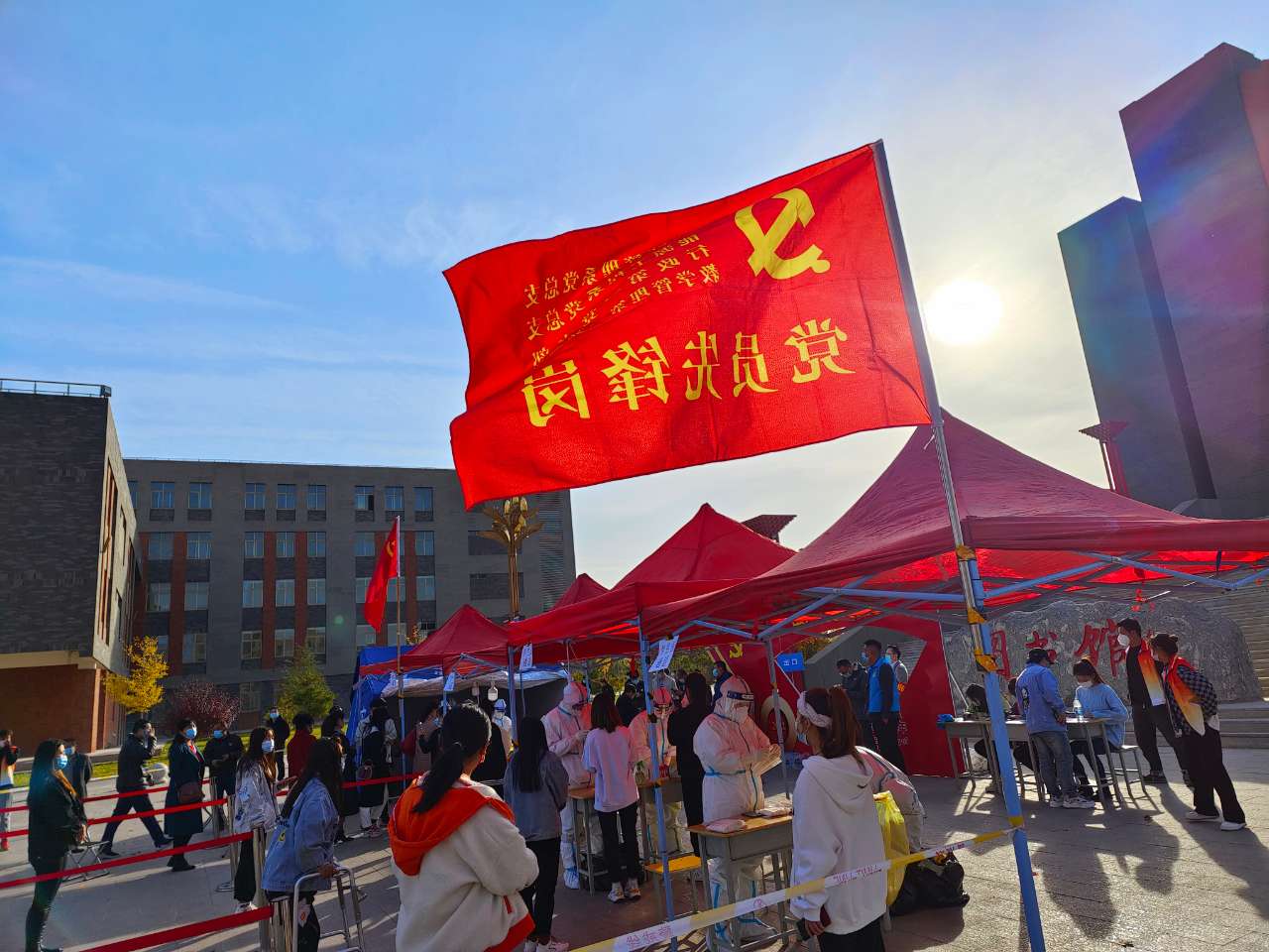 做師生員工“服務(wù)員”。涼州區(qū)實行車輛管控措施以后,學院積極與相關(guān)部門溝通為食堂、超市送貨車輛辦理“車輛通行證”,保證師生日常生活不受影響;大規(guī)模核酸檢測期間,學院迅速與社區(qū)聯(lián)系為醫(yī)務(wù)人員提供便利條件和餐飲服務(wù),組織師生黨員、入黨積極分子和團學干部成立志愿者隊伍投入到秩序維護、信息登記、證明發(fā)放、物資運輸?shù)雀黜椆ぷ髦?,保障了三輪大?guī)模核酸檢測工作的順利完成;積極協(xié)調(diào)通信企業(yè)為師生提供優(yōu)質(zhì)網(wǎng)絡(luò)服務(wù),保障疫情防控期間線上教學順利開展;完善智慧教學資源庫建設(shè),引入更多的優(yōu)質(zhì)線上教學資源,方便師生開展線上教學和學習......始終把師生的一樁樁、一件件“小事”當作學院的“大事”,在疫情防控中扎實開展“我為師生辦實事”實踐活動,堅持把疫情防控作為檢驗黨史學習教育成果、體現(xiàn)責任擔當?shù)闹匾獞?zhàn)場,讓黨旗在疫情防控第一線高高飄揚,筑牢保護人民群眾生命健康安全的“紅色防線”。