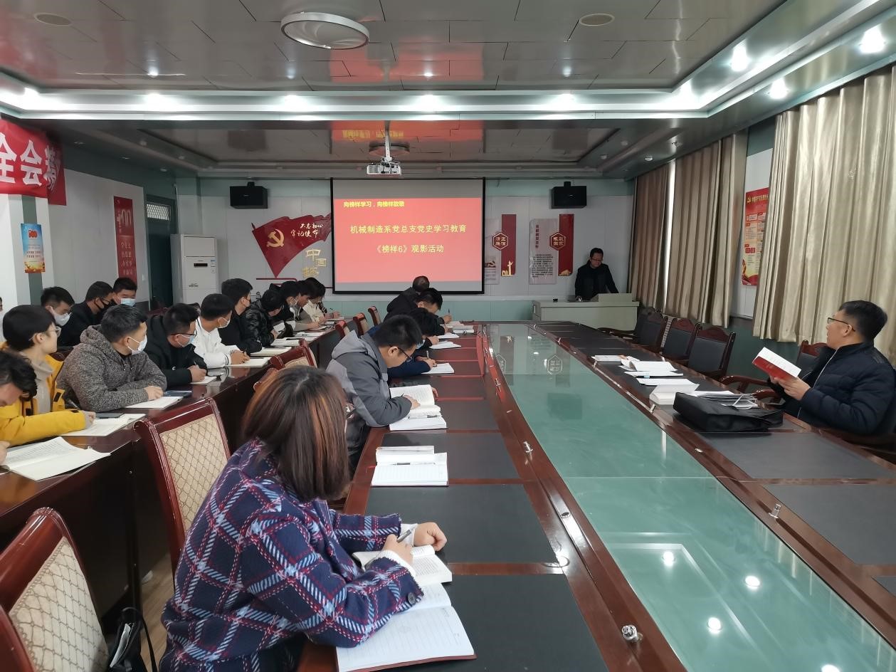 為深入學(xué)習(xí)貫徹習(xí)近平新時(shí)代中國(guó)特色社會(huì)主義思想,充分發(fā)揮先進(jìn)典型示范引領(lǐng)作用,教育引導(dǎo)黨員師生學(xué)習(xí)榜樣、爭(zhēng)做榜樣,機(jī)械制造系黨總支于2021年12月9日下午在博學(xué)樓二樓會(huì)議室組織黨員師生觀看了《榜樣6》專(zhuān)題節(jié)目。