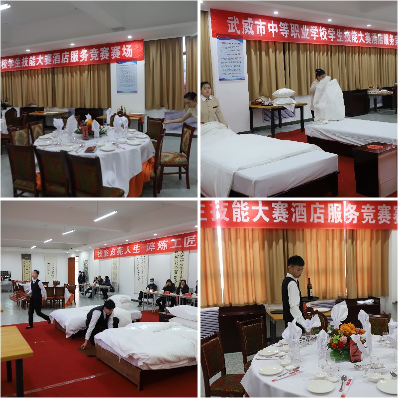 12月19日,為期兩天的武威市中等職業(yè)學校技能大賽酒店服務賽項在我院篤行樓旅游管理專業(yè)創(chuàng)新創(chuàng)業(yè)實訓中心圓滿落幕,本次大賽共吸引了來自全市中等職業(yè)學校旅游酒店專業(yè)60多名選手報名參賽。
