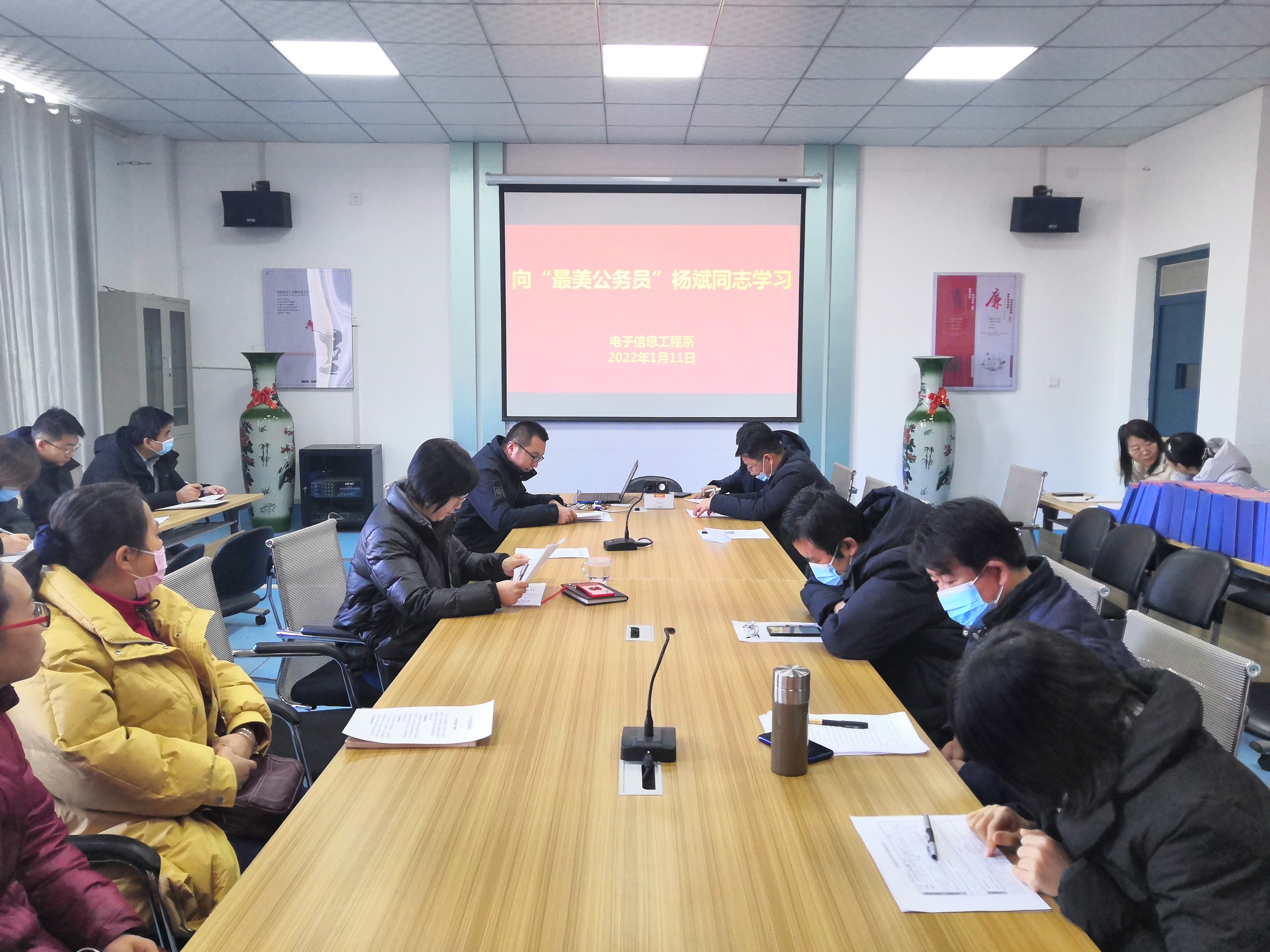 為深入學(xué)習(xí)貫徹習(xí)近平總書記重要指示精神,表彰先進、弘揚正氣,引導(dǎo)廣大黨員、教師胸懷理想、堅定信念,開拓進取、敬業(yè)奉獻,在社會主義現(xiàn)代化建設(shè)各項事業(yè)中發(fā)揮先鋒模范作用。1月11日,電子信息工程系組織全體教師學(xué)習(xí)“最美公務(wù)員”楊斌同志先進事跡。