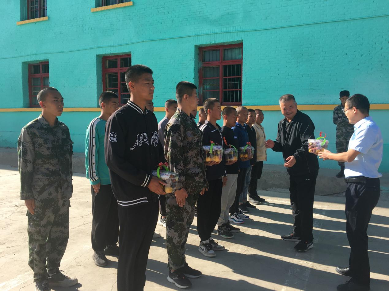王守云詢問了同學(xué)們的近期訓(xùn)練、生活情況,為同學(xué)們送上了中秋節(jié)慰問品,并代表學(xué)院向應(yīng)征入伍的同學(xué)表示祝賀。
