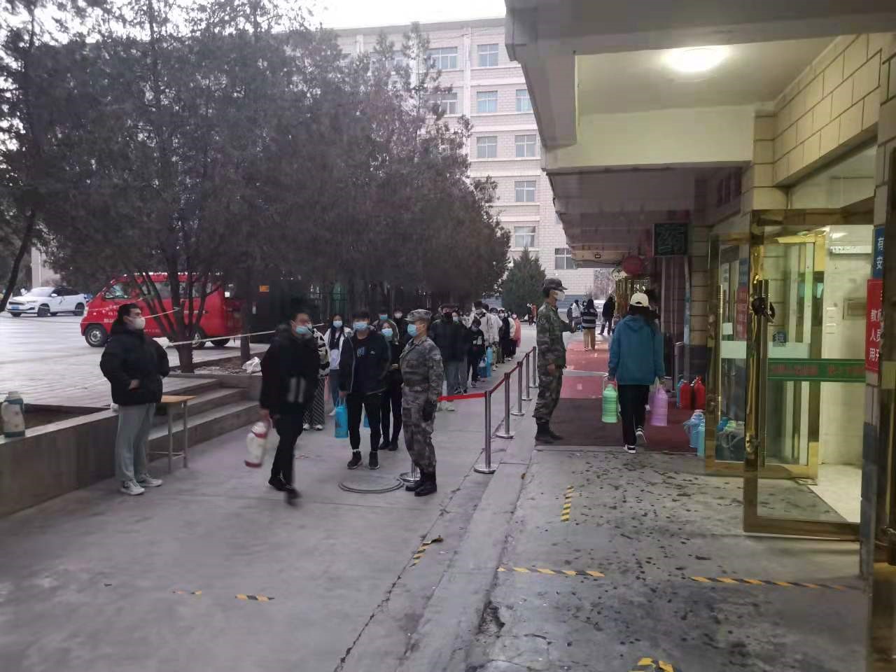 “同學(xué)們排隊(duì)時(shí)保持一米間距,不要聚集”“同學(xué)們上臺(tái)階的時(shí)候慢點(diǎn)走,注意腳下”,在堅(jiān)定而溫暖的提示下,同學(xué)們整整齊齊的排好了隊(duì)等待打開水。他就是藥學(xué)系2019級(jí)藥學(xué)3班學(xué)生,原武警北京總隊(duì)執(zhí)勤某支隊(duì)退伍士兵常路楊同學(xué),本次疫情爆發(fā)后,他帶領(lǐng)學(xué)校10名退伍同學(xué)呈遞《請(qǐng)戰(zhàn)書》,主動(dòng)請(qǐng)纓“抗疫”,參與到疫情防控工作中去,維護(hù)水房秩序、動(dòng)員同學(xué)們戴好口罩、有序排隊(duì)。進(jìn)入11月份以后,天氣越發(fā)的寒冷,但他們卻一如既往堅(jiān)守著自己的崗位,持續(xù)奉獻(xiàn)著自己的光和熱,“寒風(fēng)裂征衣,飛雪裹戰(zhàn)袍”,他們用實(shí)際行動(dòng)證明了中國(guó)軍人從來(lái)都不會(huì)后退。