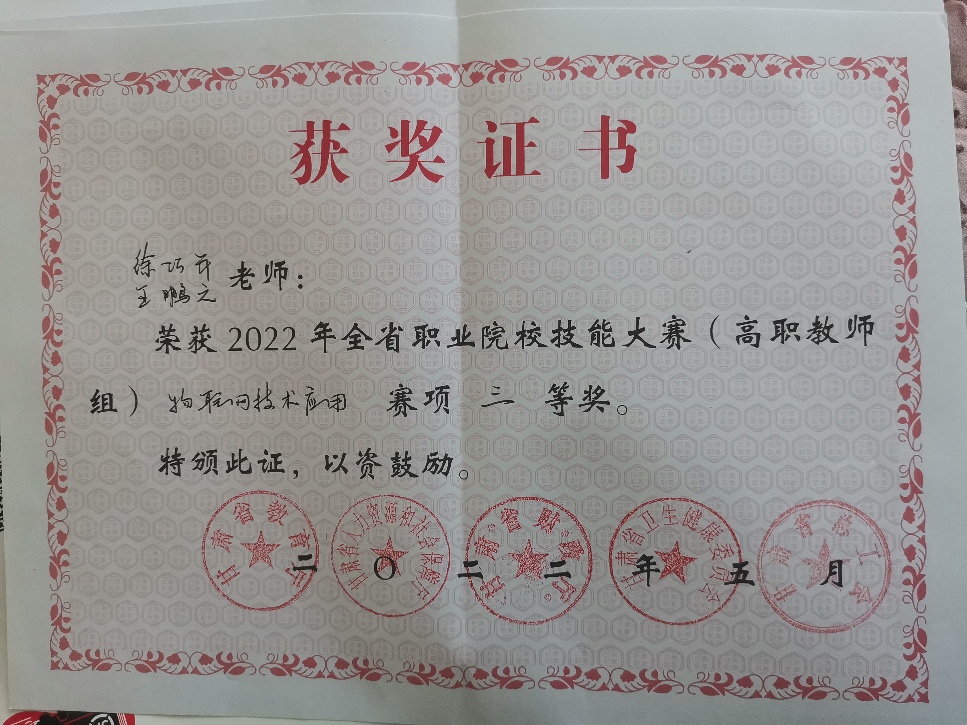 ? 4月28日至29日,2022年甘肅省職業(yè)院校技能大賽物聯(lián)網(wǎng)技術(shù)應(yīng)用賽項(xiàng)在培黎職業(yè)學(xué)院舉辦,信息技術(shù)學(xué)院在該賽項(xiàng)中獲學(xué)生組一等獎(jiǎng)、二等獎(jiǎng)、三等獎(jiǎng)各1項(xiàng),教師組獲三等獎(jiǎng)。