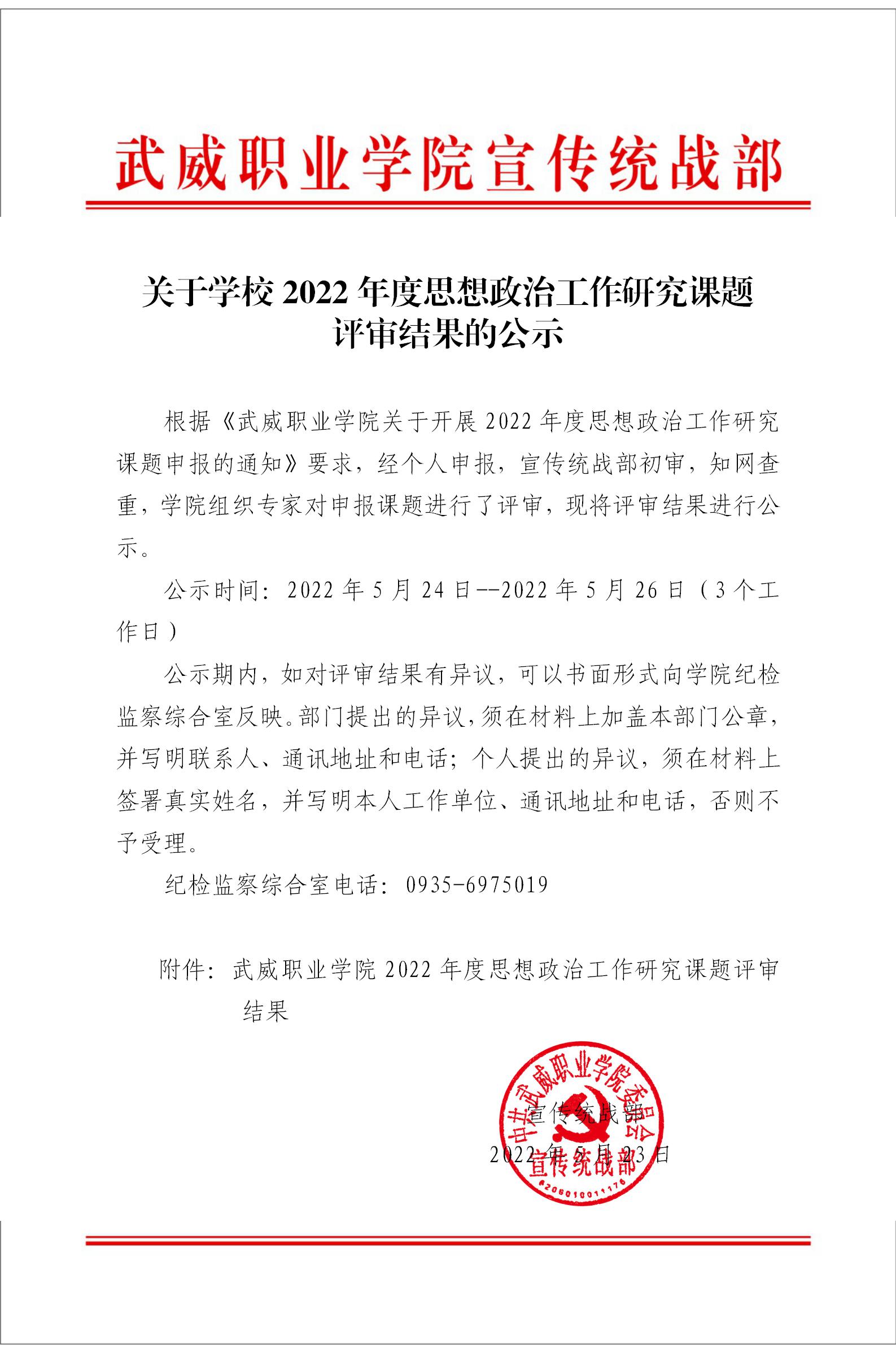 附件:武威職業(yè)學院2022年度思想政治工作研究課題評審結果