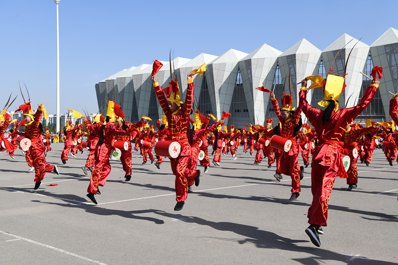 開幕式的最后一個環(huán)節(jié)是團體操表演。宏偉壯觀的國家級非物質(zhì)文化遺產(chǎn)項目攻鼓子表演,剛?cè)岵奈湫g(shù)表演,活力四射的健美操,使人精神振奮,熱情沸騰。一個個精彩的表演贏得了全場一陣陣的掌聲和歡呼聲,為開幕式營造了熱烈的氛圍,充分的展現(xiàn)了新時代大學(xué)生的青春風(fēng)采。