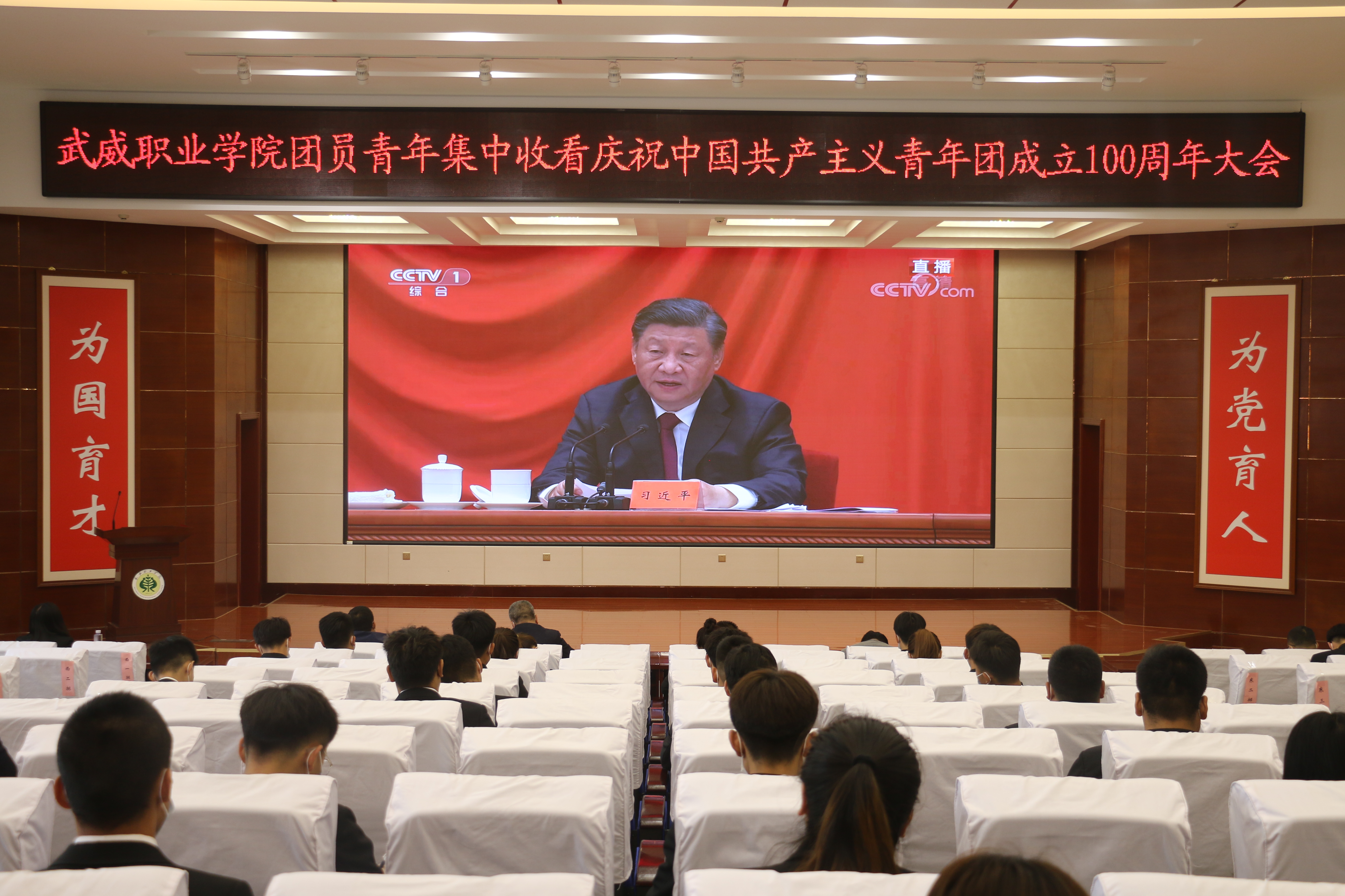 5月10日上午10時(shí),慶祝中國共產(chǎn)主義青年團(tuán)成立100周年大會(huì)在北京人民大會(huì)堂隆重舉行。中共中央總書記、國家主席、中央軍委主席習(xí)近平出席大會(huì)并發(fā)表重要講話。校團(tuán)委組織團(tuán)員青年集中收看大會(huì)盛況,學(xué)校黨委委員、副校長王守云和同學(xué)們一起觀看了直播。