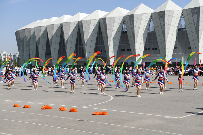 開幕式的最后一個環(huán)節(jié)是團體操表演。宏偉壯觀的國家級非物質文化遺產項目攻鼓子表演,剛柔并濟的武術表演,活力四射的健美操,使人精神振奮,熱情沸騰。一個個精彩的表演贏得了全場一陣陣的掌聲和歡呼聲,為開幕式營造了熱烈的氛圍,充分的展現(xiàn)了新時代大學生的青春風采。