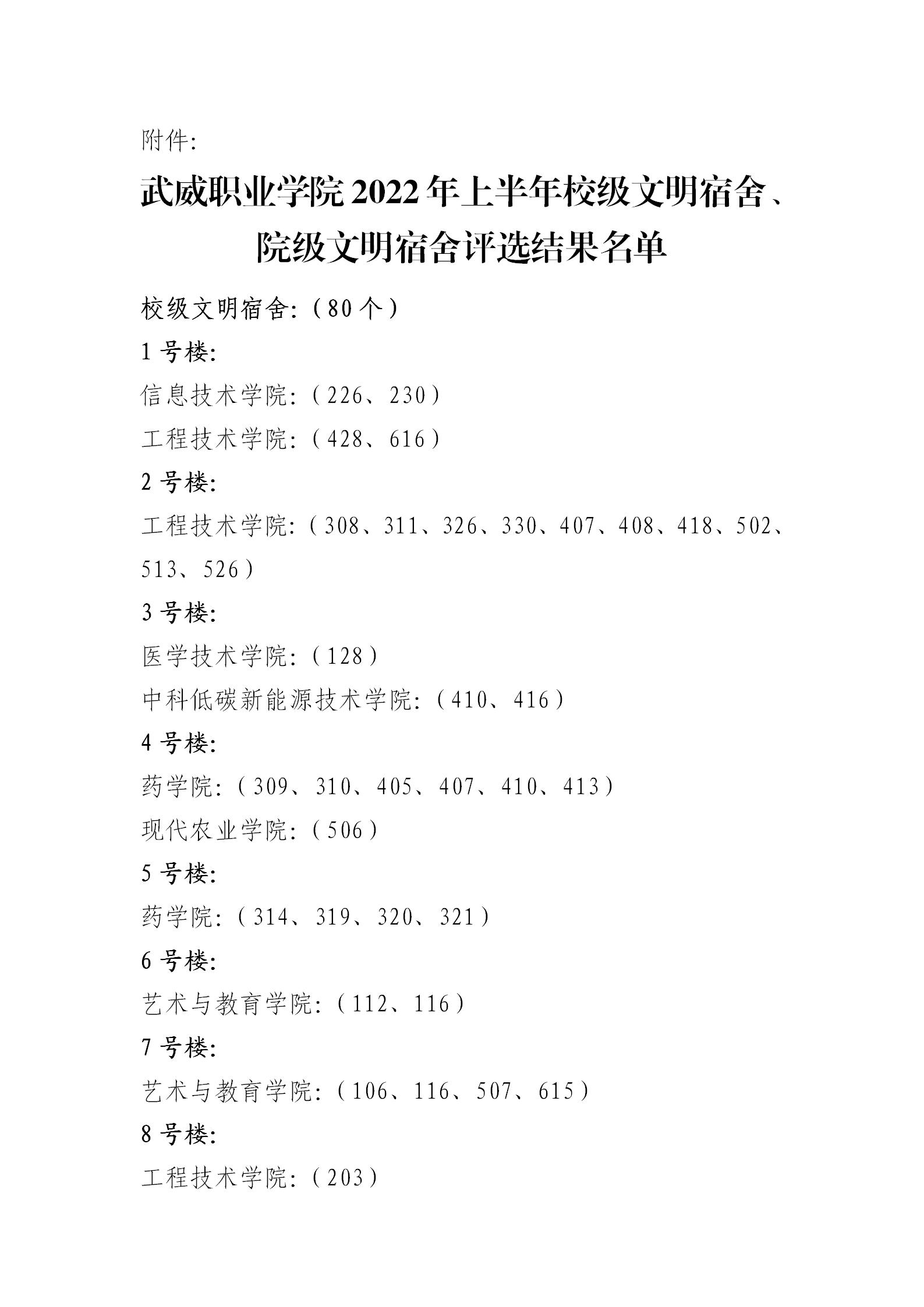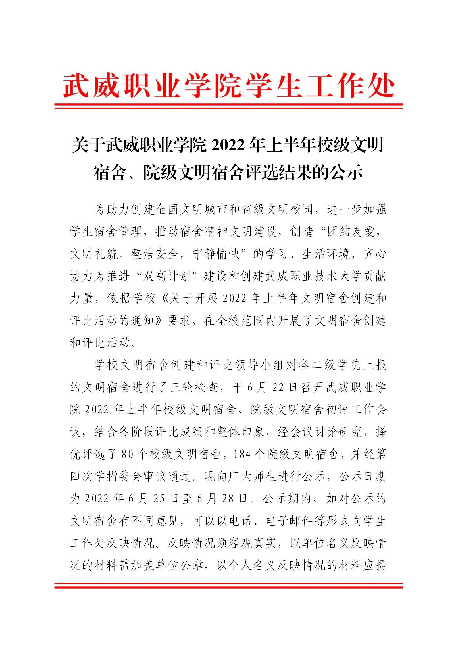 關(guān)于武威職業(yè)學(xué)院2022年上半年校級文明宿舍、院級文明宿舍評選結(jié)果的公示