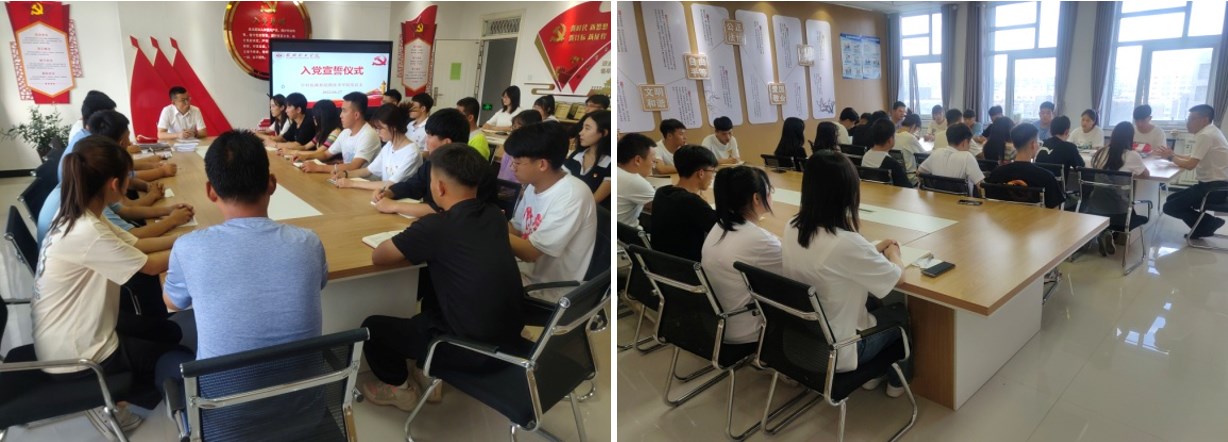 在“七一”來臨之際,為加強黨員教育、增強黨性觀念,中科低碳新能源技術學院黨總支于2022年6月27日下午在能源樓六樓黨員活動室組織開展了新黨員入黨宣誓儀式。學院黨總支全體黨員以及師生預備黨員參加宣誓儀式。