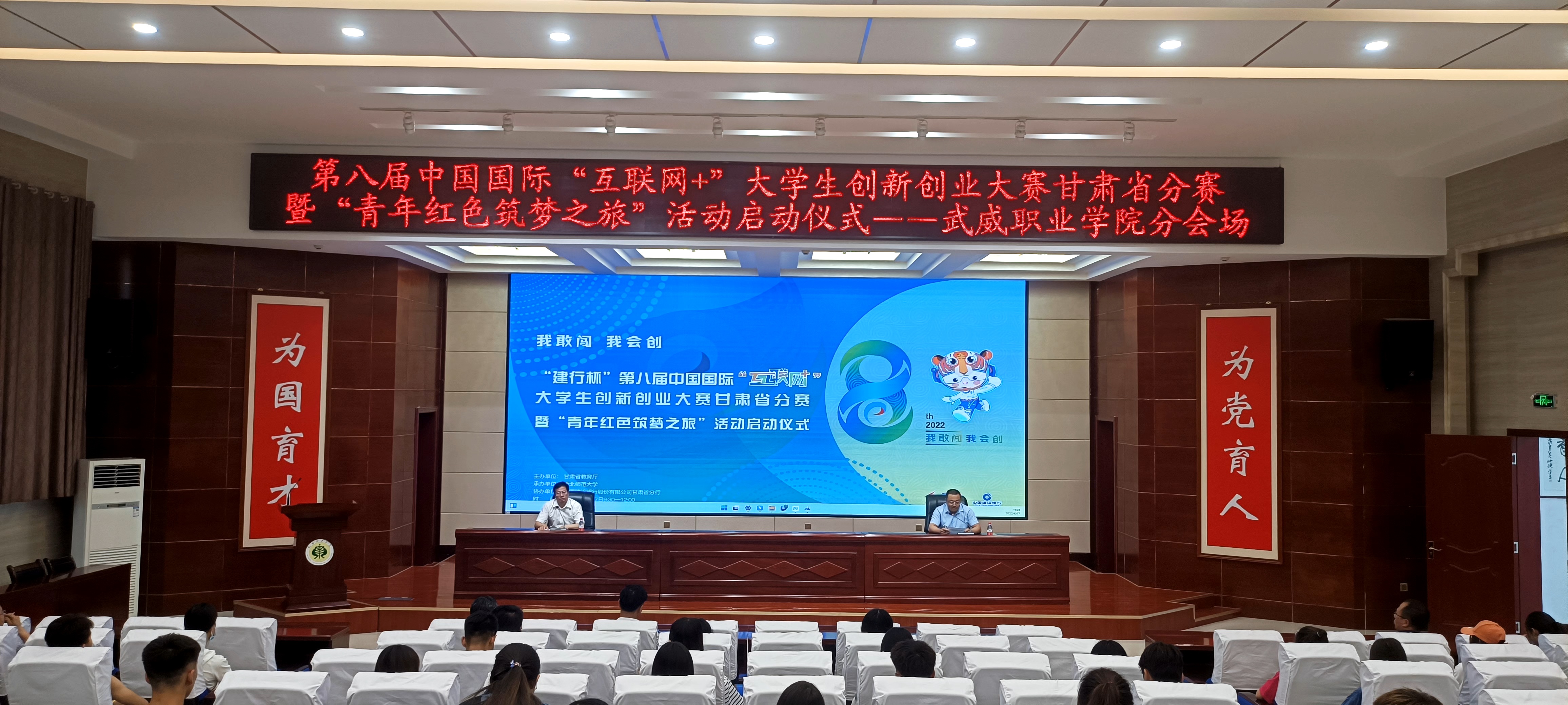 6月17日上午,第八屆中國國際“互聯(lián)網(wǎng)+”大學(xué)生創(chuàng)新創(chuàng)業(yè)大賽甘肅省分賽暨“青年紅色筑夢(mèng)之旅”活動(dòng)啟動(dòng)儀式在西北師大舉行,我校在菁英廳設(shè)立分會(huì)場。本次啟動(dòng)儀式分線上線下兩階段進(jìn)行,第一階段以線上方式參加第八屆中國國際“互聯(lián)網(wǎng)+”大學(xué)生創(chuàng)新創(chuàng)業(yè)大賽甘肅省分賽啟動(dòng)儀式,第二階段為我校啟動(dòng)儀式。
