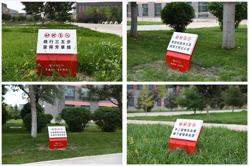 “繞行三五步,留得芳草綠”“要想校園凈又美,健康文明記心里”“手上留情花自香,腳下留情草如茵”。近日,在校園主干道周邊、草坪附近,這樣的文明言行提示語(yǔ)隨處可見(jiàn)。這是學(xué)校為不斷優(yōu)化校園環(huán)境,提升師生日常文明素養(yǎng),推動(dòng)文明校園建設(shè)的重要舉措,安裝完成后得到了廣大師生的高度贊賞。