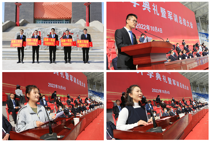 開學(xué)典禮前,舉行了新生軍訓(xùn)總結(jié)大會(huì)。各方陣隊(duì)列整齊劃一,步伐堅(jiān)定有力,口號(hào)氣勢(shì)磅礴,歌聲嘹亮高亢,充分彰顯了廣大同學(xué)聽從命令、服從指揮、朝氣蓬勃、團(tuán)結(jié)向上的良好精神風(fēng)貌。學(xué)生工作處負(fù)責(zé)人宣讀了2022年軍訓(xùn)先進(jìn)集體和軍訓(xùn)標(biāo)兵名單,出席大會(huì)的領(lǐng)導(dǎo)為先進(jìn)集體、個(gè)人頒發(fā)了獎(jiǎng)牌和榮譽(yù)證書。