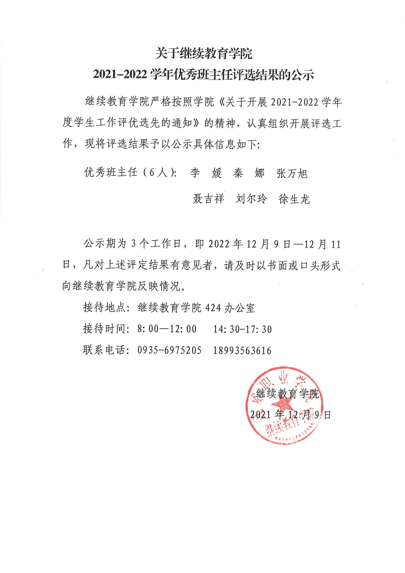 繼續(xù)教育學(xué)院關(guān)于2021-2022學(xué)年優(yōu)秀班主任評(píng)選結(jié)果的公示