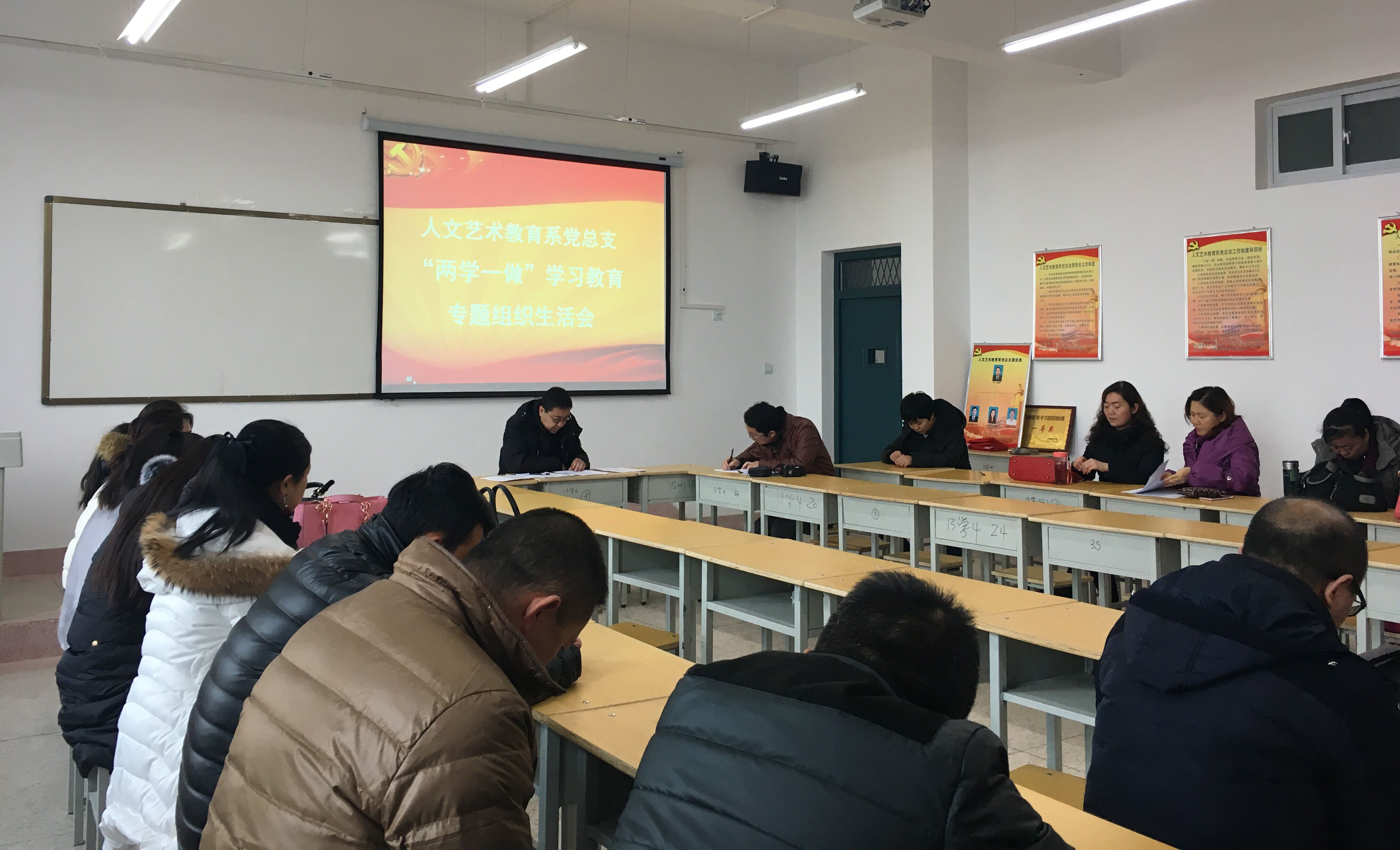 1月10日下午,人文藝術(shù)教育系黨總支在勵(lì)勤樓403黨員活動(dòng)室召開(kāi)了“兩學(xué)一做”學(xué)習(xí)教育專題組織生活會(huì)和民主評(píng)議黨員大會(huì),會(huì)議由系黨總支書(shū)記胡靜峰同志主持,全體黨員及部分群眾參加了會(huì)議。