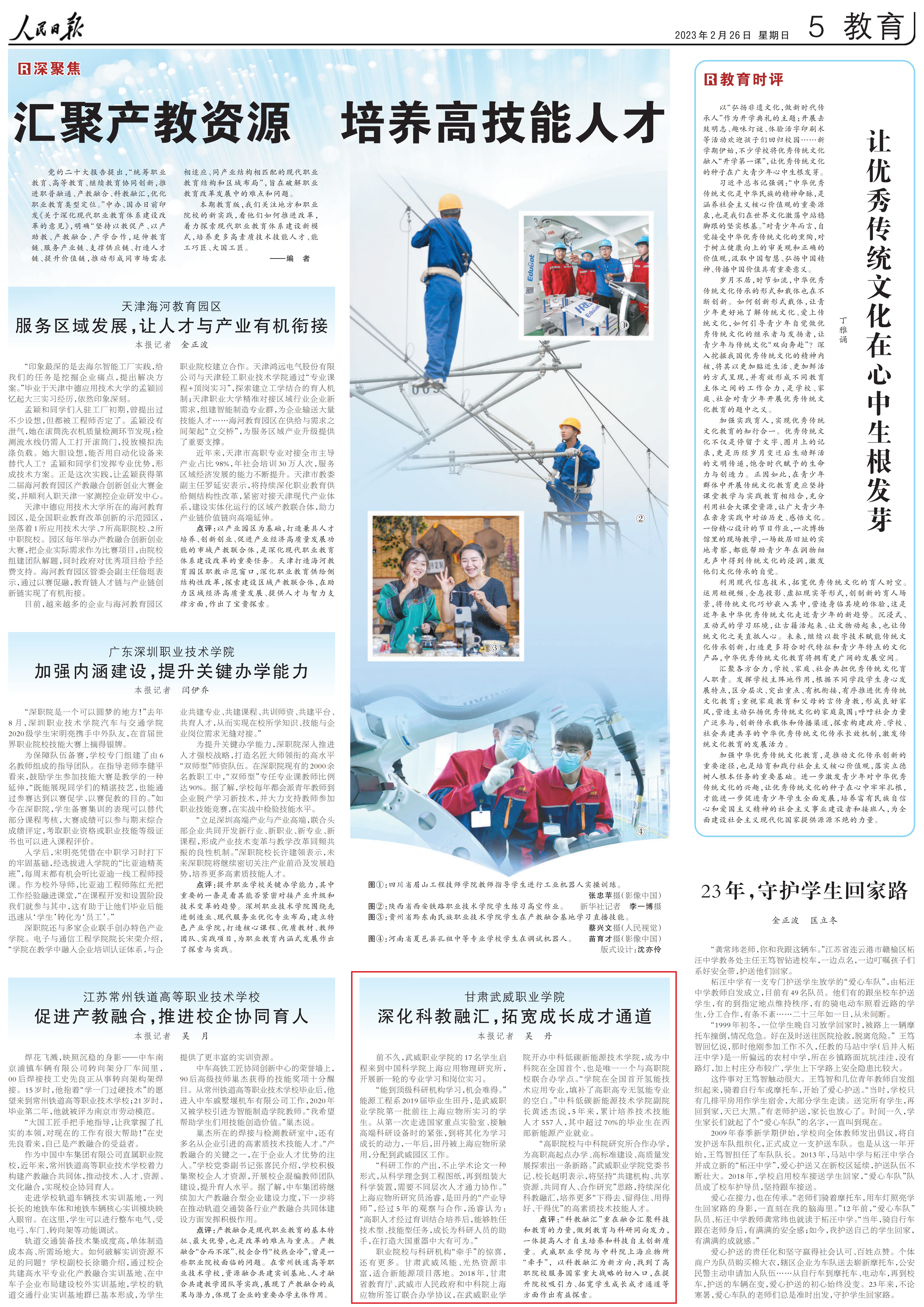 武威職業(yè)學院深化科教融匯,拓寬成長成才通道獲人民日報宣傳報道