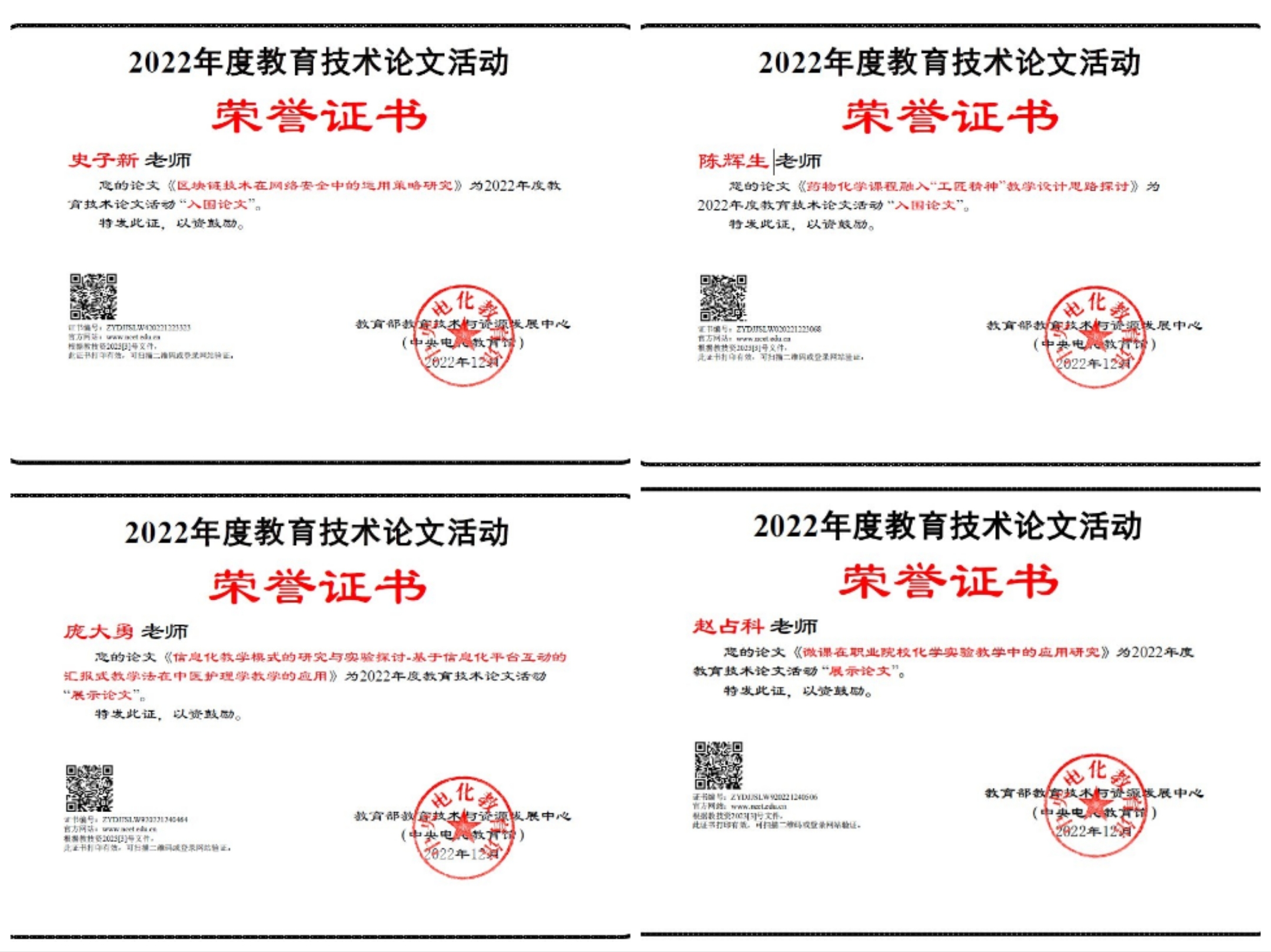 近日,教育部教育技術(shù)與資源發(fā)展中心(中央電化教育館)2022年全國(guó)師生信息素養(yǎng)提升實(shí)踐活動(dòng)(第二十六屆教師活動(dòng))評(píng)審結(jié)果出爐。學(xué)校趙占科、龐大勇、史子新、陳輝生四名教師的教育技術(shù)論文被分別評(píng)為展示論文和入圍論文,學(xué)校在2022年度教育技術(shù)論文活動(dòng)組織工作中被評(píng)為突出貢獻(xiàn)學(xué)校。