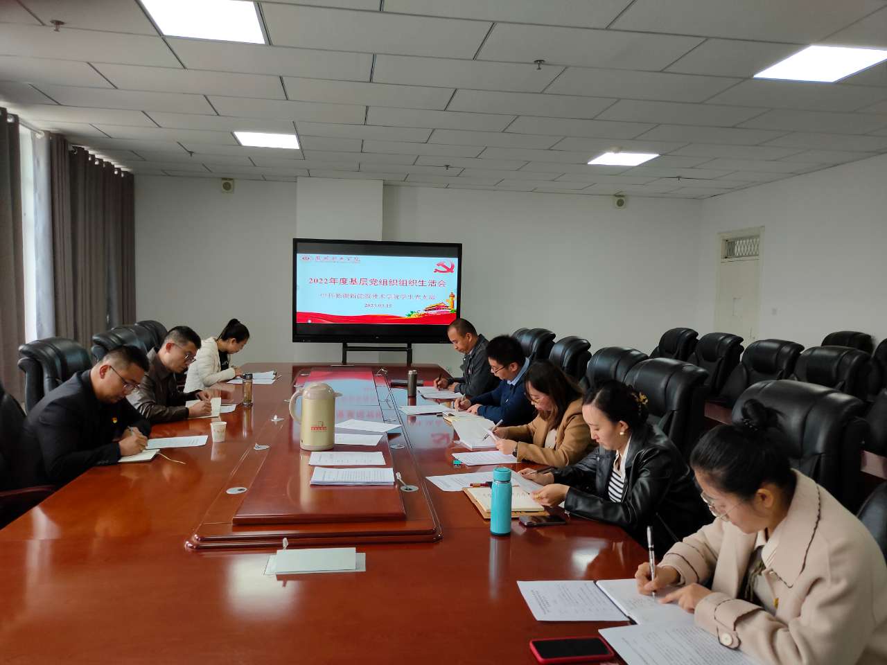 為深入學(xué)習(xí)貫徹黨的二十大精神,堅(jiān)持不懈用習(xí)近平新時(shí)代中國特色社會主義思想凝心鑄魂,不斷提升基層黨組織政治功能和組織力,進(jìn)一步激發(fā)黨員充分發(fā)揮先鋒模范作用,按照校黨委統(tǒng)一部署,3月15日下午,中科低碳新能源技術(shù)學(xué)院教師黨支部、學(xué)生黨支部在能源科技樓610、604召開2022年度基層黨組織組織生活會和開展民主評議黨員活動。會議由兩個(gè)支部書記主持,支部全體黨員參加,學(xué)校第二督導(dǎo)組成員張世亮、許中璞全程參與督導(dǎo)。