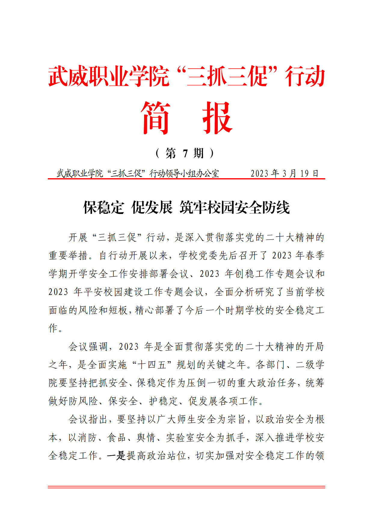 簡報第7期:保穩(wěn)定 促發(fā)展 筑牢校園安全防線