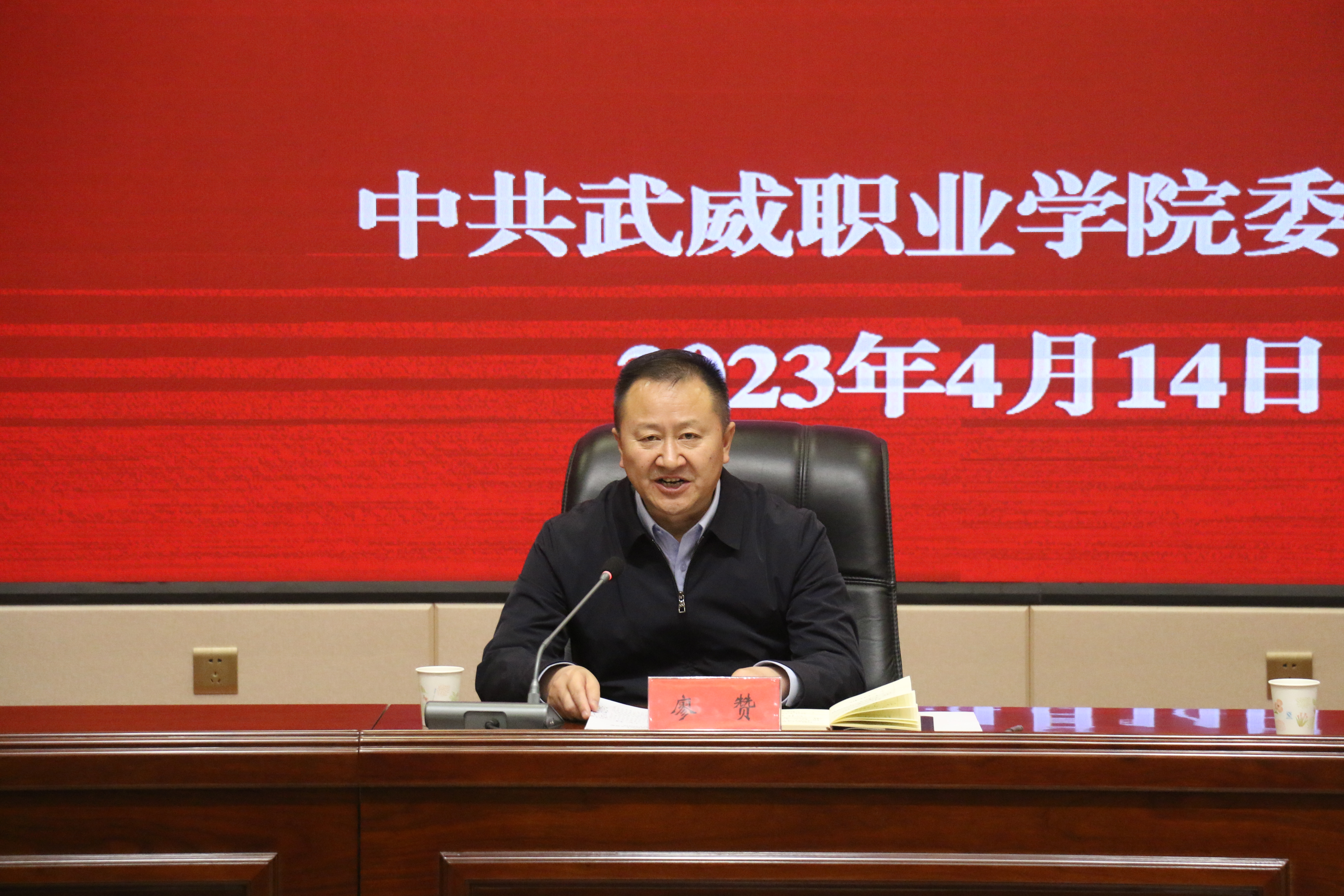 4月14日下午,學(xué)校召開學(xué)習(xí)貫徹習(xí)近平新時代中國特色社會主義思想主題教育動員部署會議。省委第十巡回指導(dǎo)組副組長、省景泰川電力提灌水資源利用中心黨委委員、副主任廖贊到會指導(dǎo)并講話。學(xué)校黨委書記、校長、主題教育領(lǐng)導(dǎo)小組組長趙明主持會議,傳達中央主題教育工作會議精神和省委主題教育動員部署會議精神并作動員講話。