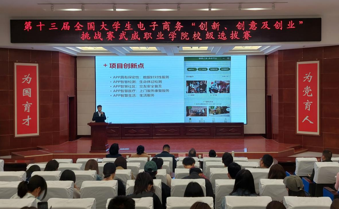 ?從校級通訊賽中脫穎而出的參賽隊伍依次登臺展示,項目涵蓋非遺傳承、智慧養(yǎng)老、鄉(xiāng)村振興、電商直播、嬰幼托育、新能源等多個主題。在答辯環(huán)節(jié),評委針對項目特點進行了專業(yè)提問,并從項目名稱、商業(yè)模式、營銷策略、財務(wù)管理等方面進行了指導。