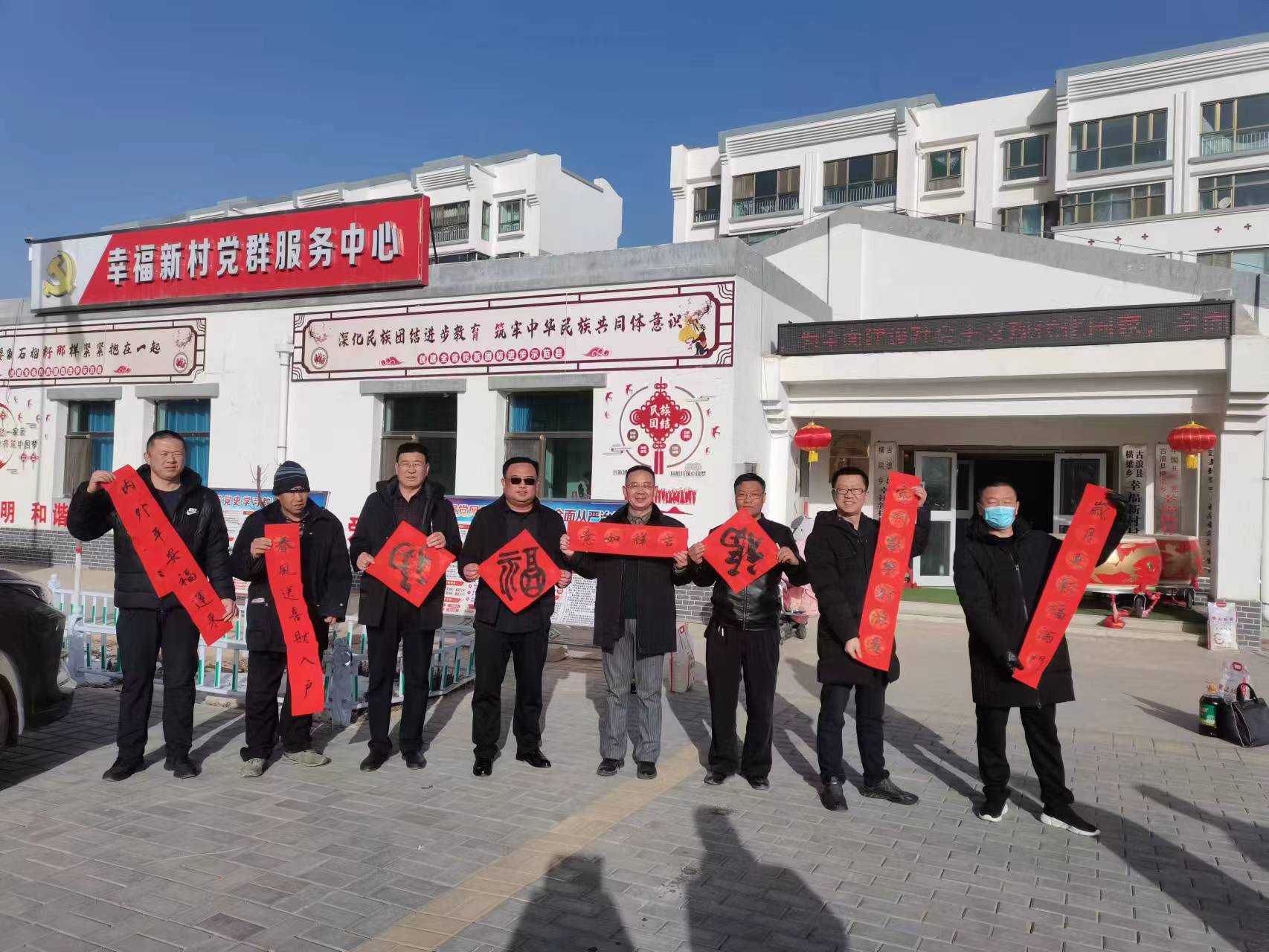 會(huì)后,志愿者為村民送上了春聯(lián)、福字。“好運(yùn)常來添富貴,吉星高照永平安”“春歸大地人間暖,福降神州喜臨門”……一副副春聯(lián)承載著大家對(duì)新年的美好祝福,對(duì)未來幸福生活的期許和向往。村民群眾結(jié)伴而來,仔細(xì)挑選每一副春聯(lián)。大家拿到散發(fā)淡淡墨香、帶著濃濃祝福的大紅春聯(lián)和福字,臉上洋溢著幸福的笑容。此次活動(dòng)共送出1400副春聯(lián),3000個(gè)福字,將新年祝福送到千家萬戶,不僅弘揚(yáng)優(yōu)秀傳統(tǒng)文化,也營造了濃濃的新春氣氛,增進(jìn)村民間的情感。