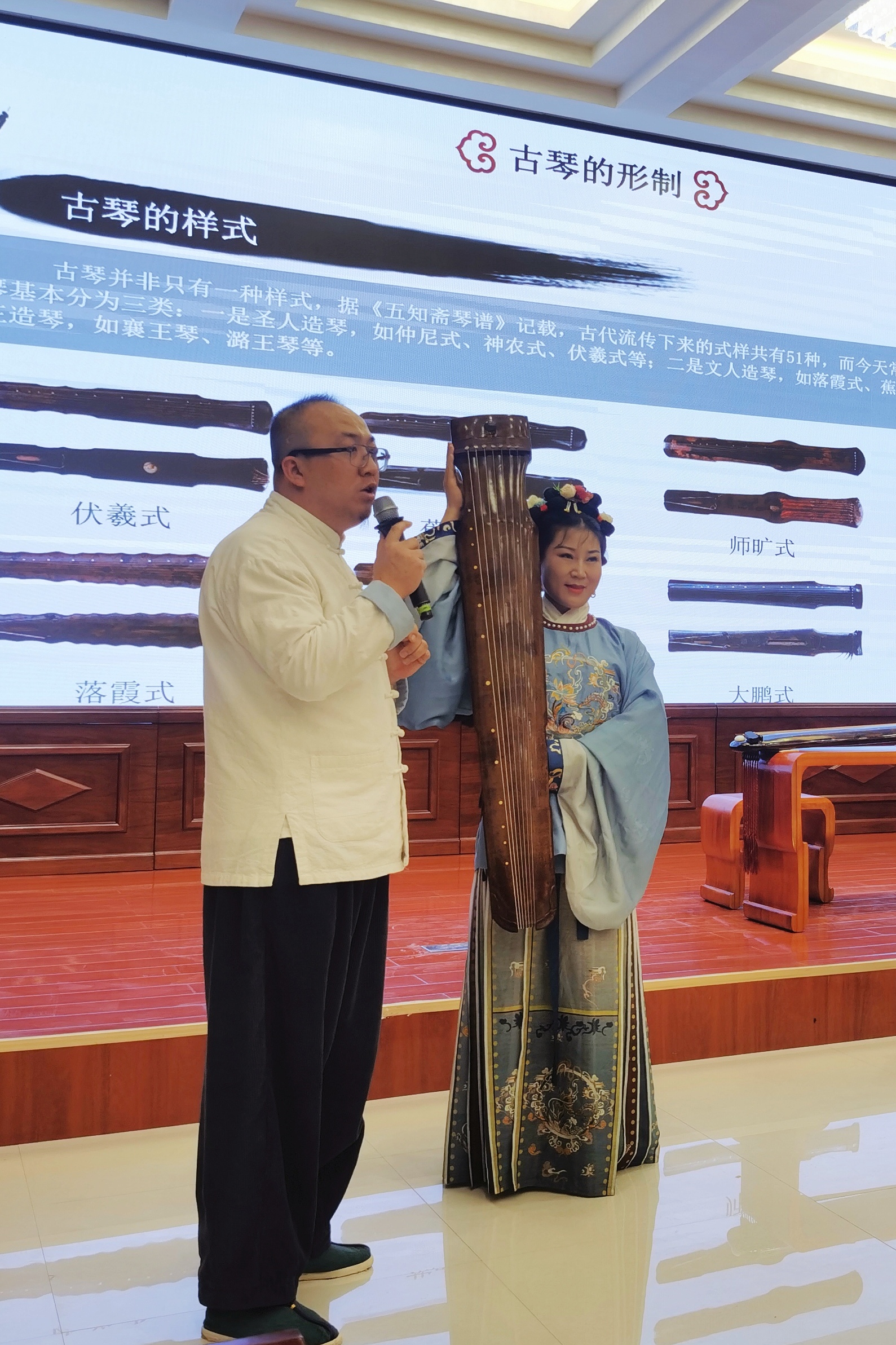 5月11日,學(xué)校傳統(tǒng)文化體驗(yàn)中心、非遺體驗(yàn)中心邀請(qǐng)到了移云齋涼州分館館長(zhǎng)、古琴講師霍宏昌在菁英廳做了《古琴文化》專題講座和古琴名曲演奏?;艉瓴龔囊磺堕L(zhǎng)亭怨慢》開(kāi)場(chǎng),古琴的古樸之聲,安靜、深沉、意味悠長(zhǎng),讓聽(tīng)者瞬間感受到了內(nèi)心的沉靜。在講解時(shí),他以影視劇中的琴人為切入點(diǎn),詳細(xì)地闡述了古琴的歷史和發(fā)展,讓同學(xué)們了解到古琴的構(gòu)造、樣式、音色和記譜法等,并在現(xiàn)場(chǎng)彈奏了古琴名曲《酒狂》和《流水》,通過(guò)感官感受加深大家對(duì)古琴的印象?;顒?dòng)在直播武威微信公眾號(hào)上同步直播,在線觀看人數(shù)達(dá)到1.62萬(wàn)人。