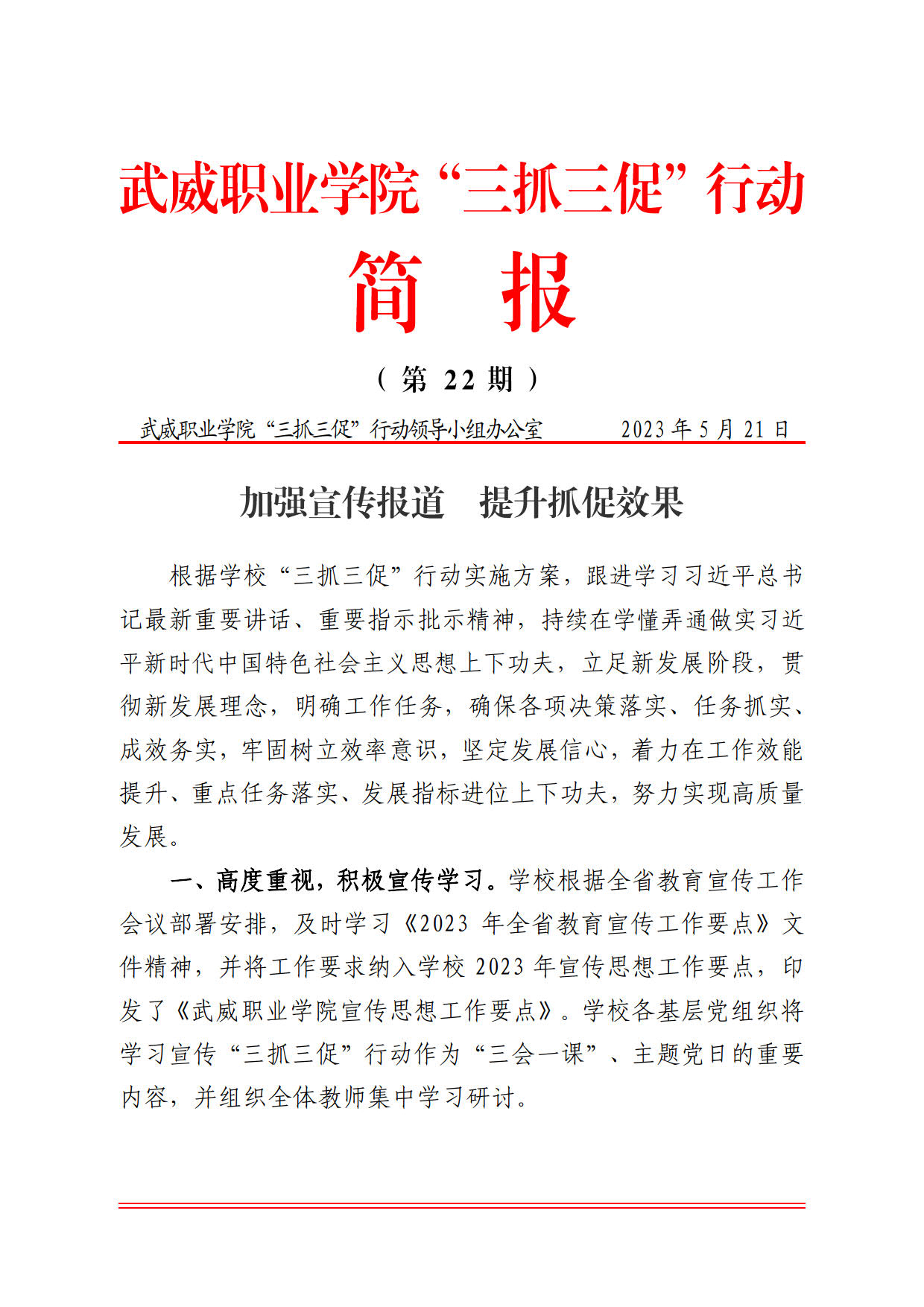 簡(jiǎn)報(bào)第22期:加強(qiáng)宣傳報(bào)道 提升抓促效果