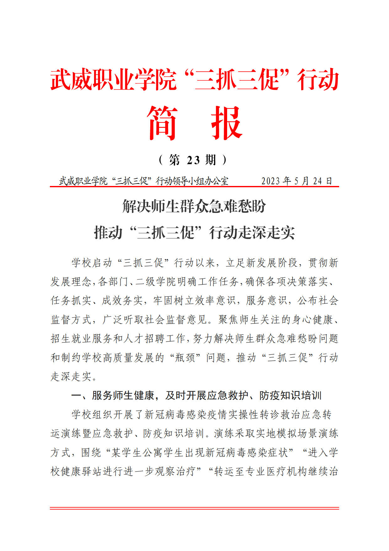 簡報第23期:解決師生群眾急難愁盼 推動“三抓三促”行動走深走實