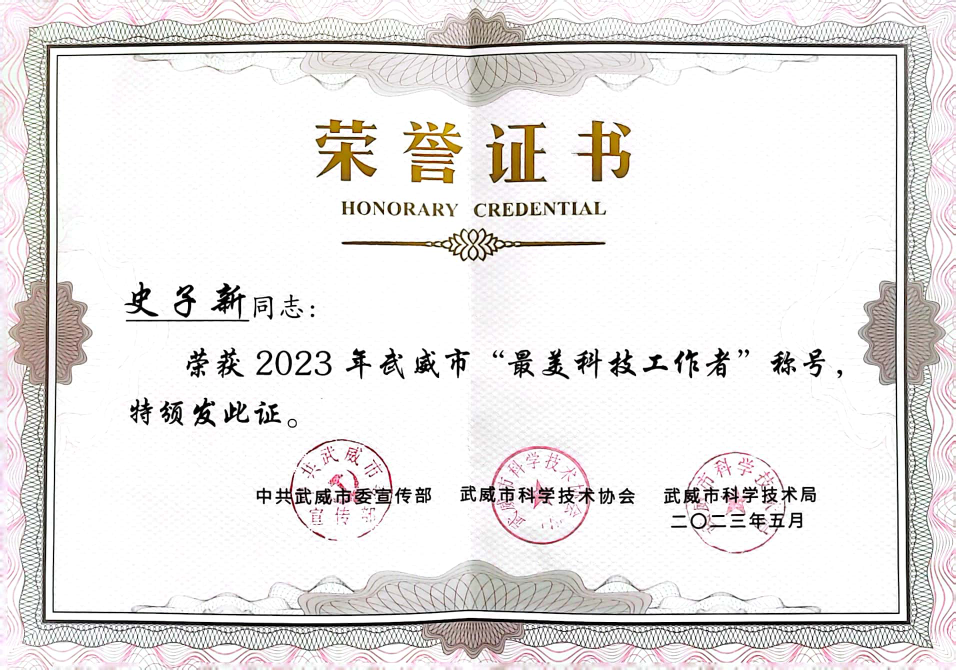 我校教師榮獲武威市“最美科技工作者”稱號(hào)