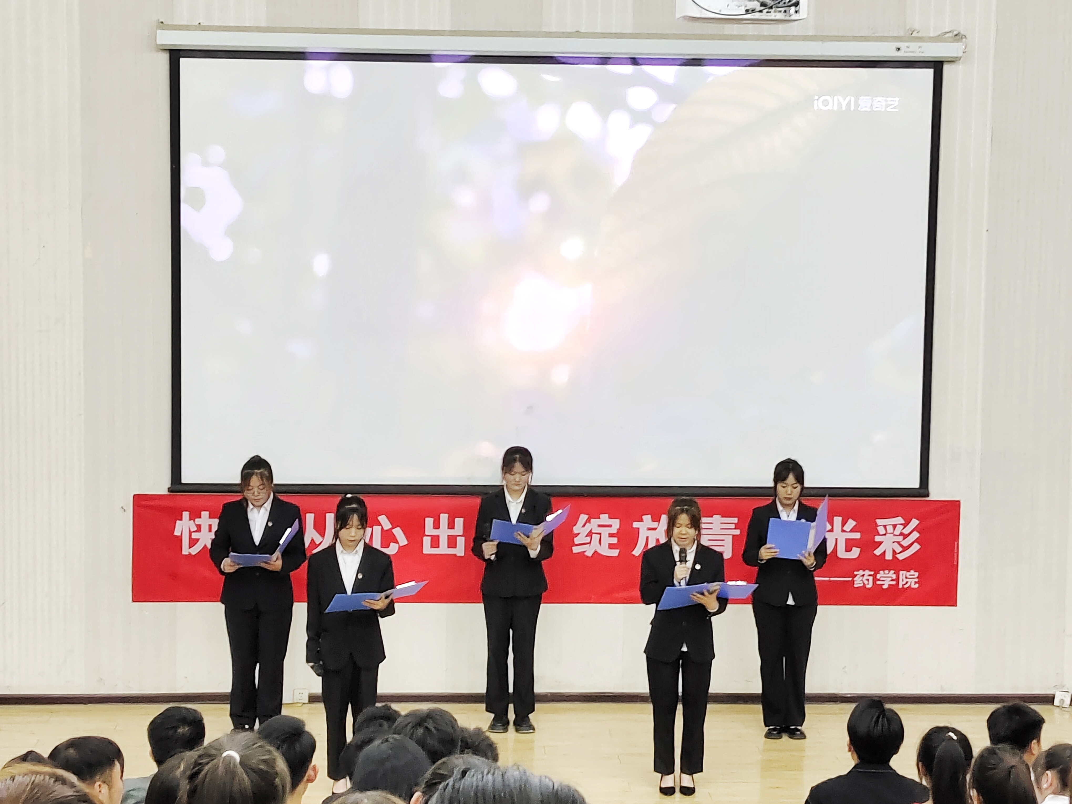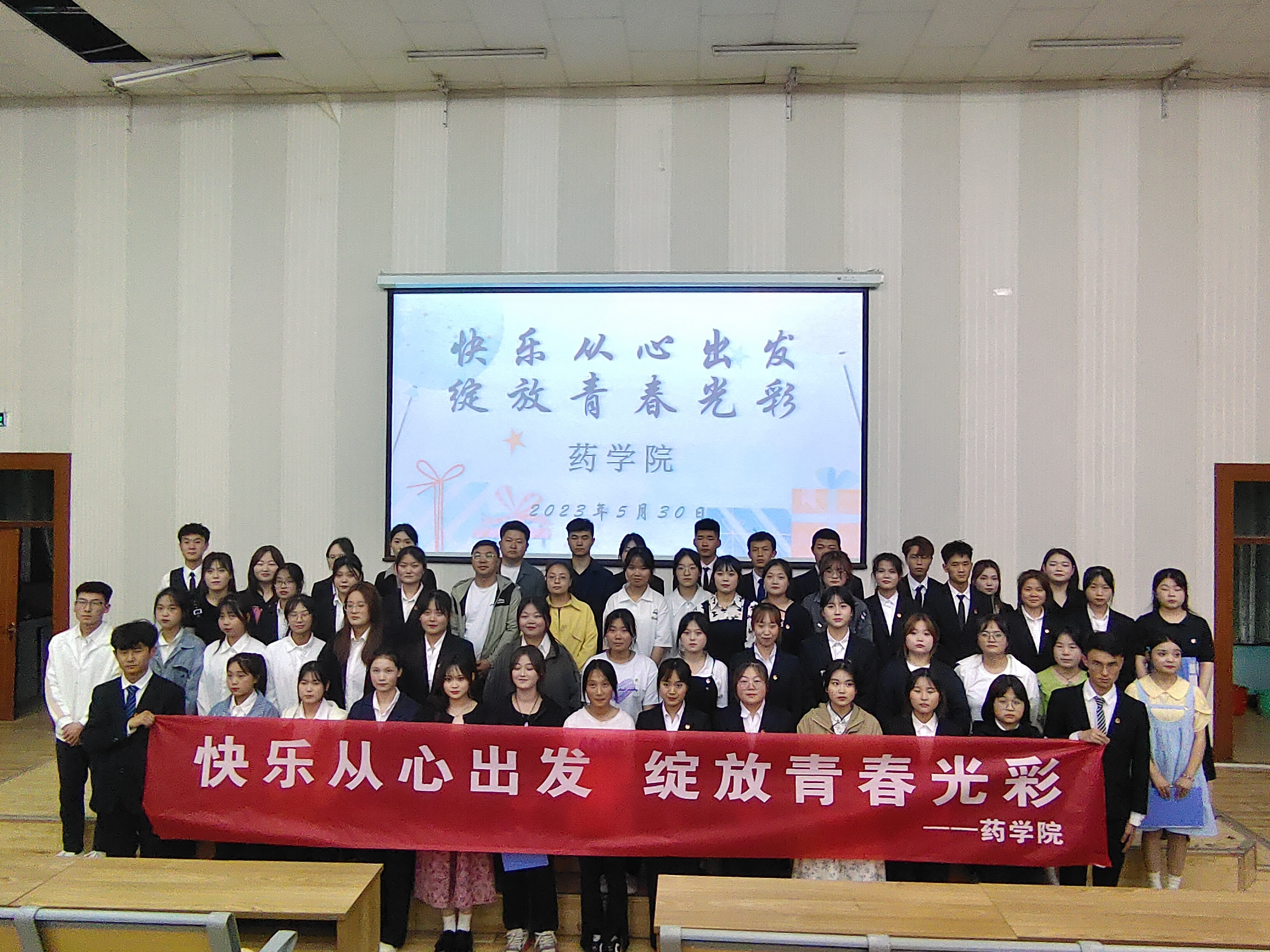 ? ? ? ?每年的5月25日是全國心理健康日,為引導(dǎo)大學(xué)生關(guān)注自身的心理健康,5月30日晚上19:30,藥學(xué)院在正德廳舉行“快樂從心出發(fā),綻放青春光彩”主題演講比賽,全院15個參賽隊參加,學(xué)生管理負(fù)責(zé)人魏曙光、團委書記楊琨、輔導(dǎo)員魯倩林、李小鵬及部分班主任觀看比賽。