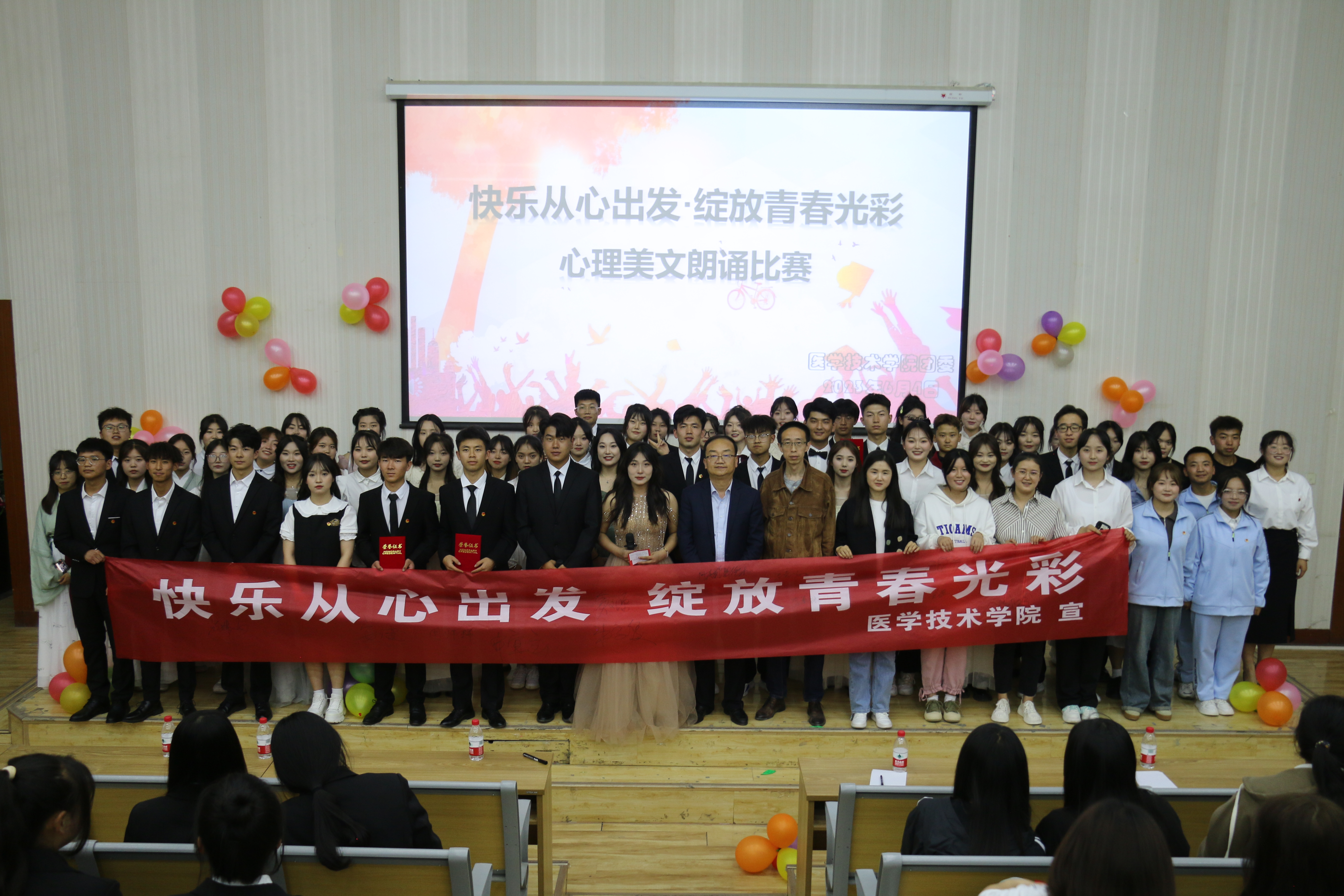 為進一步推動大學生心理健康教育、普及心理健康知識,提高大學生心理健康水平,2023年6月4日,醫(yī)學技術(shù)學院團委在尚德樓正德廳舉辦“快樂從心出發(fā) 綻放青春光彩”心理美文朗誦比賽。