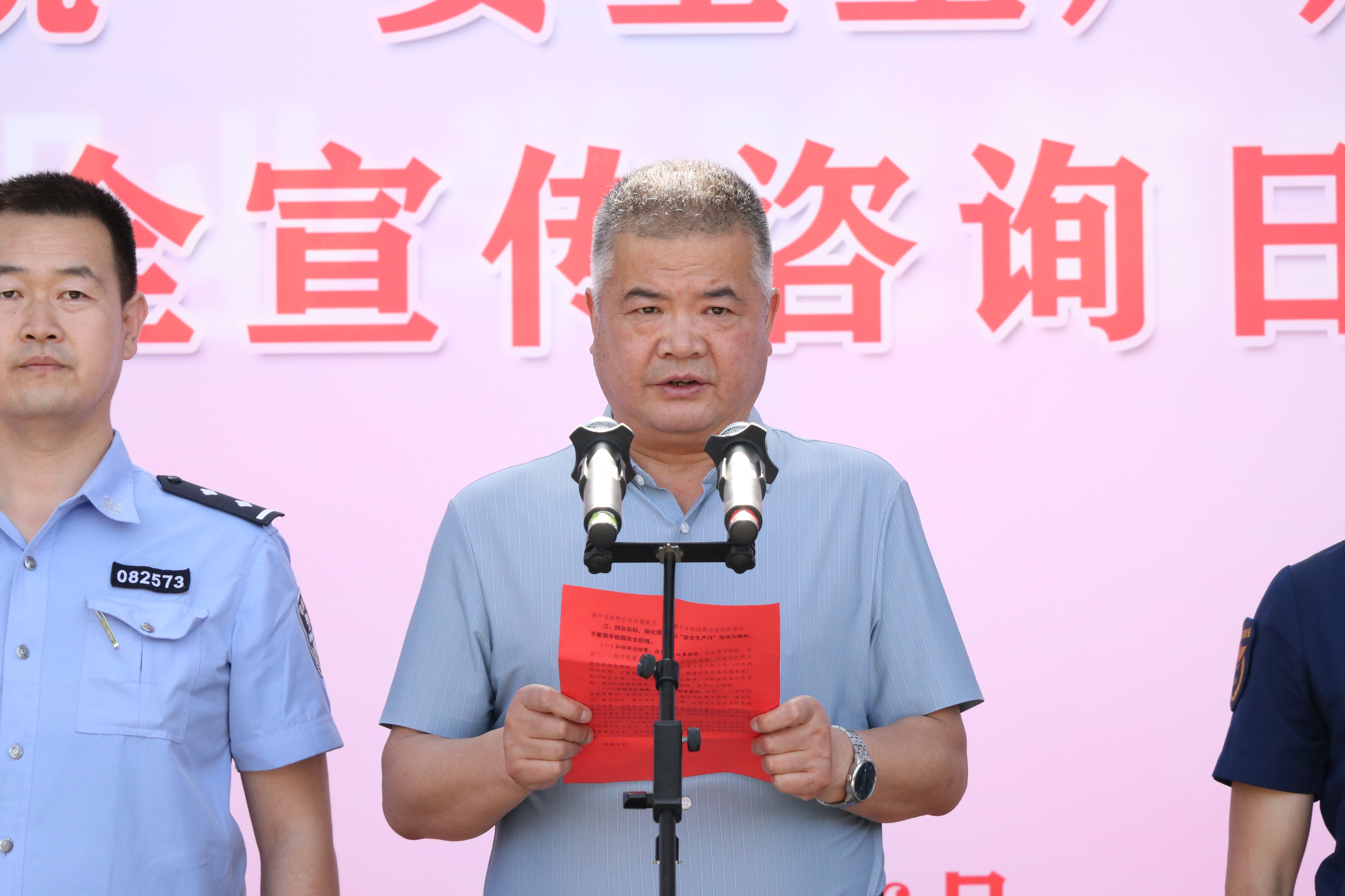 6月16日下午,學校組織開展“安全生產月”活動啟動儀式暨“6·16”安全宣傳咨詢日活動,拉開了以“人人講安全、個個會應急”為主題的全國第22個“安全生產月”活動序幕。學校黨委委員、副校長王守云、西關派出所副所長藺福鵬、各相關部門及二級學院負責人出席活動。