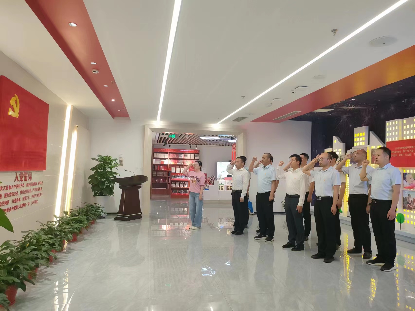 ? ? ? ? ?全體黨員懷著崇敬的心情,在講解員的引導(dǎo)下,大家有序參觀了黨性教育基地序廳、主廳、智慧黨建廳、紅色文創(chuàng)廳、尾廳和初心講堂。一件件實(shí)物、一幅幅圖片、一段段故事,把大家?guī)Щ氐侥嵌尾憠验煹膷槑V歲月,共同追憶了武威發(fā)展的光輝歷程和紅色歷史,對(duì)武威發(fā)展的輝煌歷程有了更加深入的了解和認(rèn)識(shí),對(duì)共產(chǎn)黨人的初心和使命有了更深刻的理解和感悟。在初心講堂,黨員們共同觀看紅色專題片《先鋒之光》,重溫中國(guó)共產(chǎn)黨人為了建設(shè)新中國(guó)拋頭顱、灑熱血的崢嶸歲月。