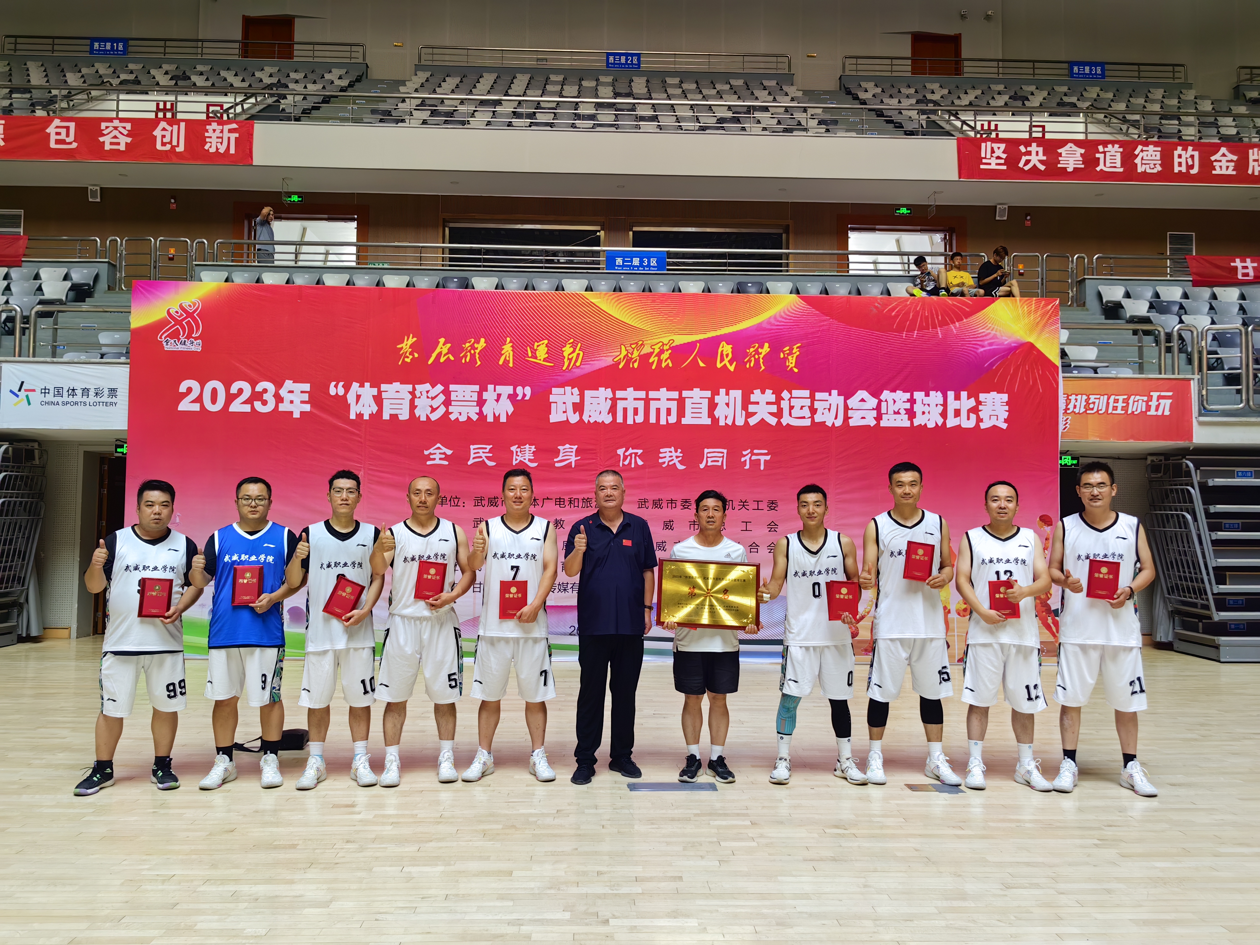 8月3日至8日,由市文體廣電旅游局、市委直屬機(jī)關(guān)工委、市總工會、市教育局、團(tuán)市委、市婦聯(lián)主辦,市體育中心承辦的2023年武威市市直機(jī)關(guān)運(yùn)動會男子籃球比賽經(jīng)過五天的激烈拼搏,學(xué)校男子籃球代表隊獲得第三名。