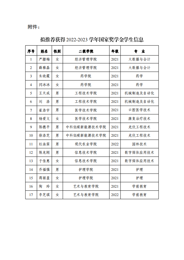 武威職業(yè)學(xué)院2022-2023學(xué)年國家獎(jiǎng)學(xué)金候選人公示