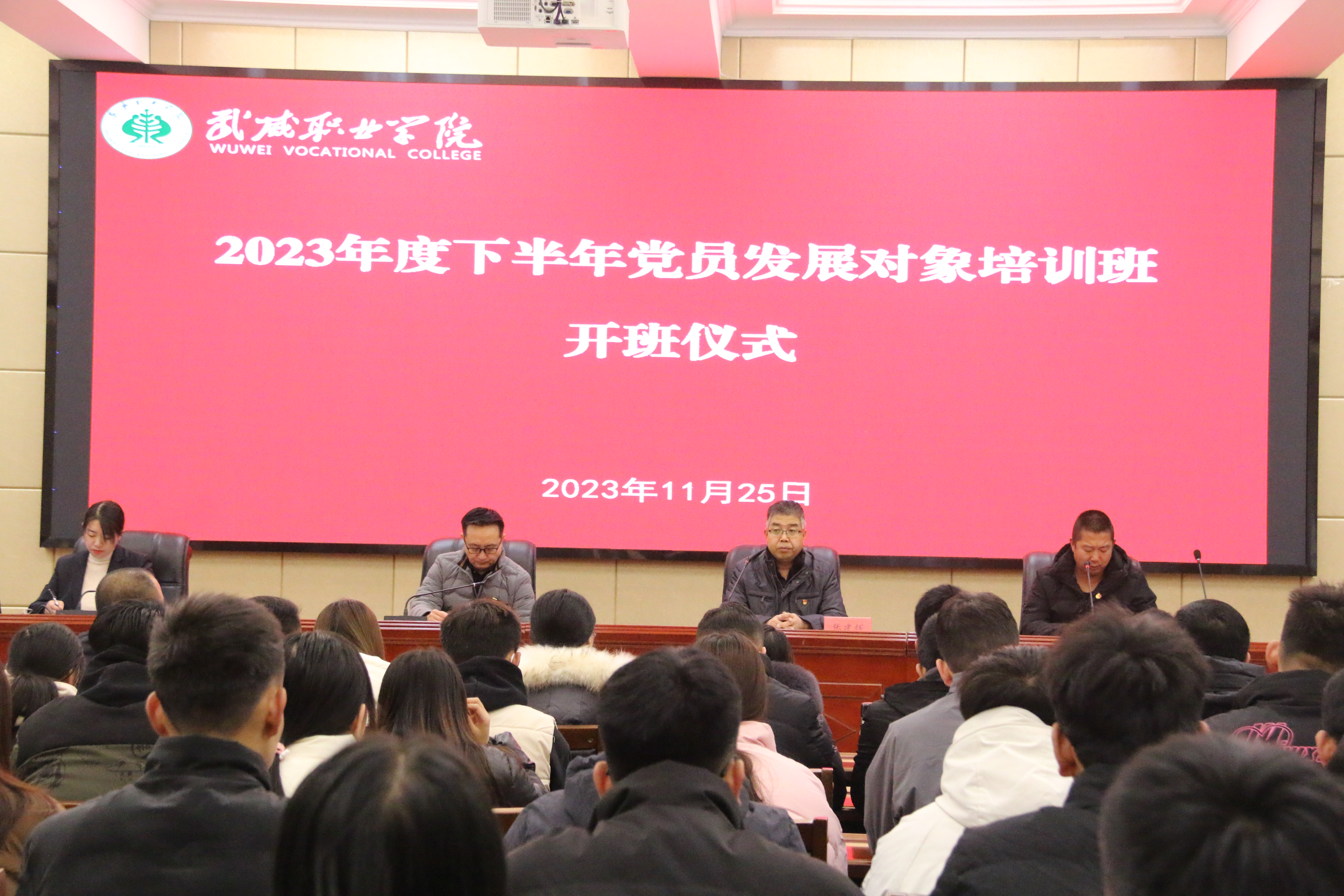 為進(jìn)一步做好黨員發(fā)展工作,嚴(yán)把黨員入口關(guān),11月25日上午,學(xué)校2023年下半年黨員發(fā)展對(duì)象培訓(xùn)班開班典禮在行樹樓北側(cè)報(bào)告廳舉行,本次培訓(xùn)班由學(xué)校黨委黨校主辦,護(hù)理學(xué)院承辦。組織人事處負(fù)責(zé)人任陶、護(hù)理學(xué)院黨總支書記張建輝及各總支、直屬黨支部組織委員參加開班儀式,來自各基層黨組織的教師、學(xué)生共92名黨員發(fā)展對(duì)象參加本次培訓(xùn)。