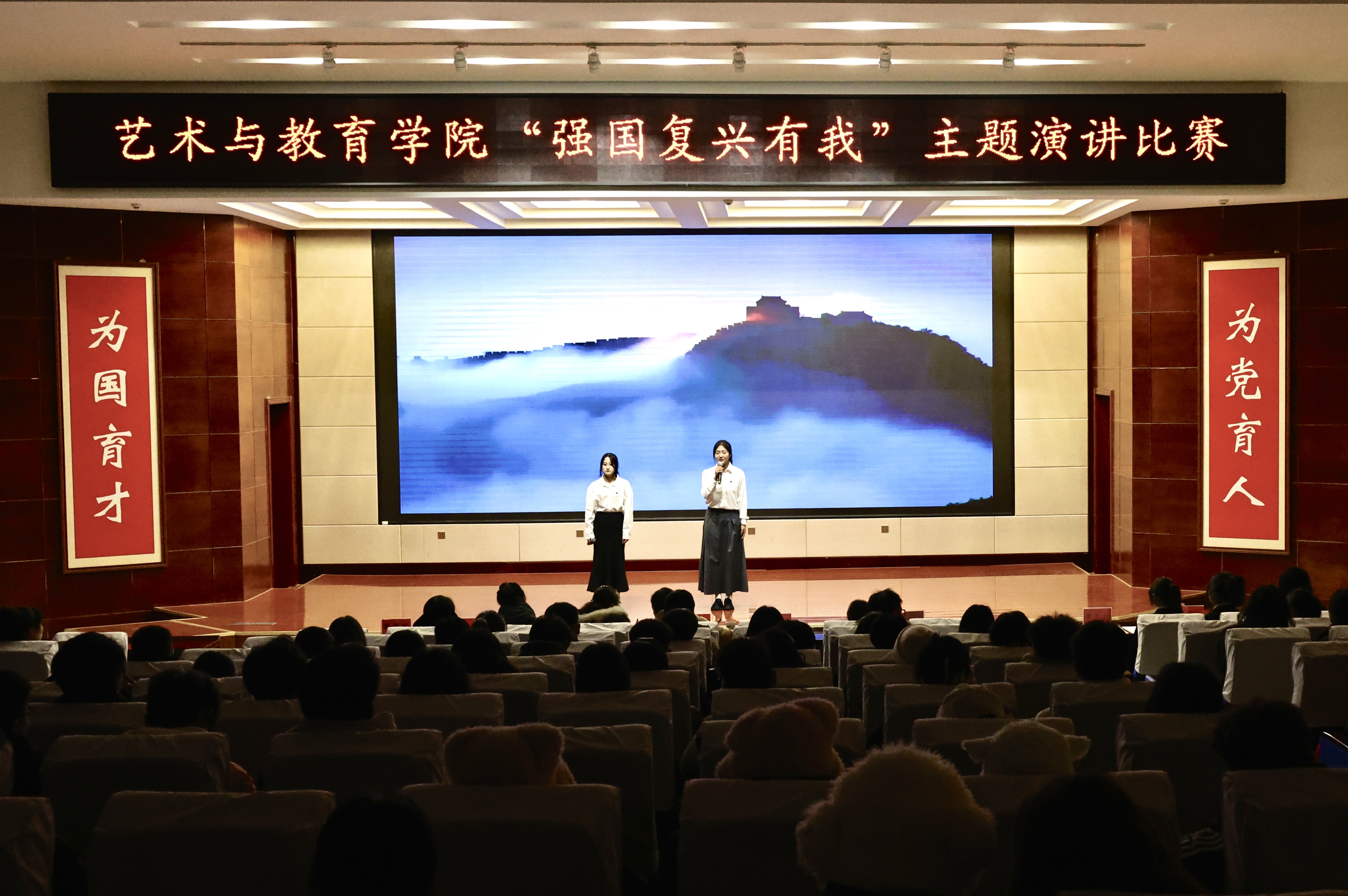 為弘揚愛國主義精神,激發(fā)學生愛國情懷,12月20日晚,藝術(shù)與教育學院團委在菁英廳舉辦“強國復興有我”主題演講比賽。學院200余名師生觀看了比賽。