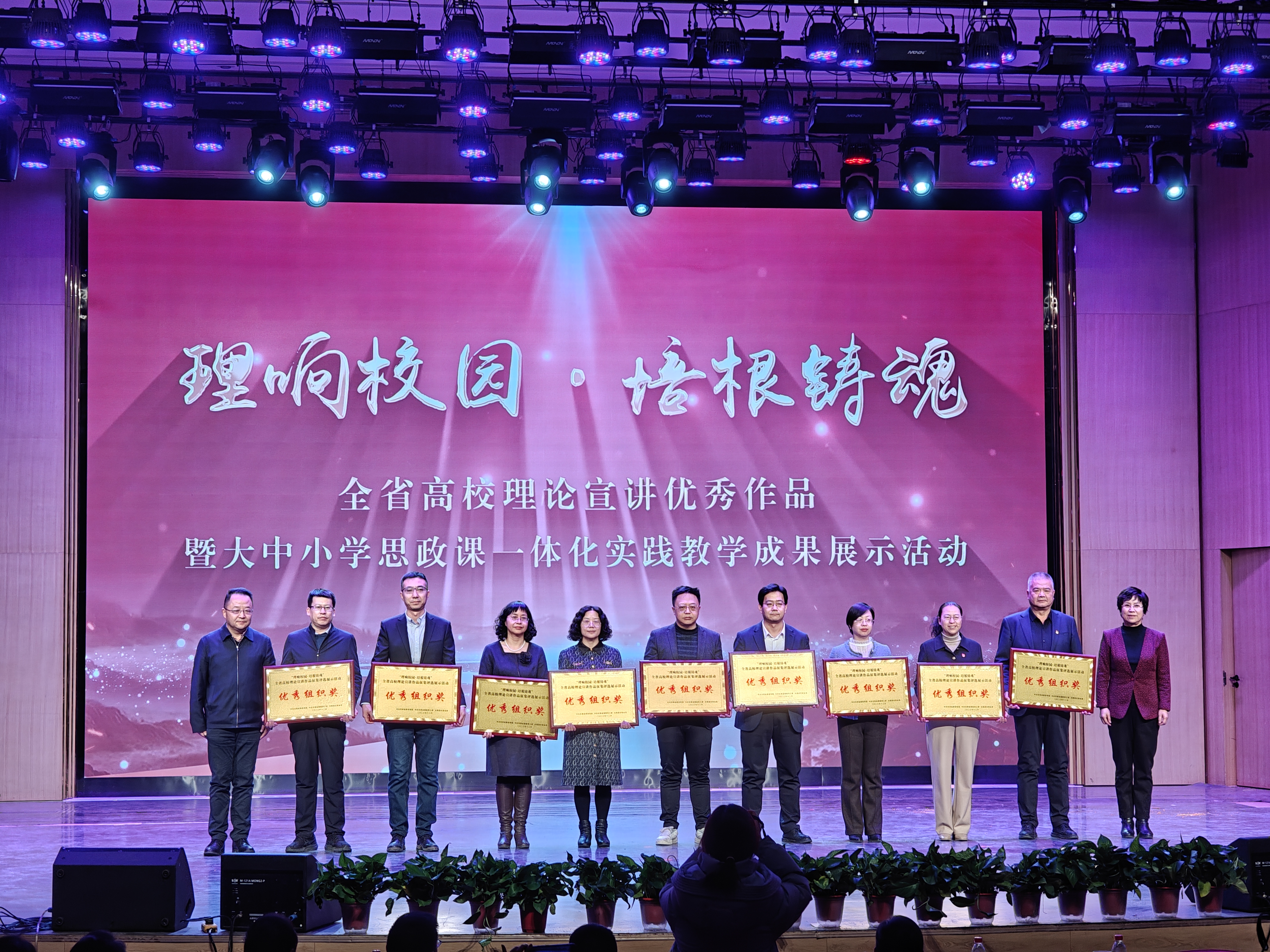 此次活動,我校榮獲一等獎兩項,二等獎四項。學校榮獲“優(yōu)秀組織獎”。其中經濟管理學院袁潔老師榮獲思政課教師組第一名,作品在現(xiàn)場進行了展演。