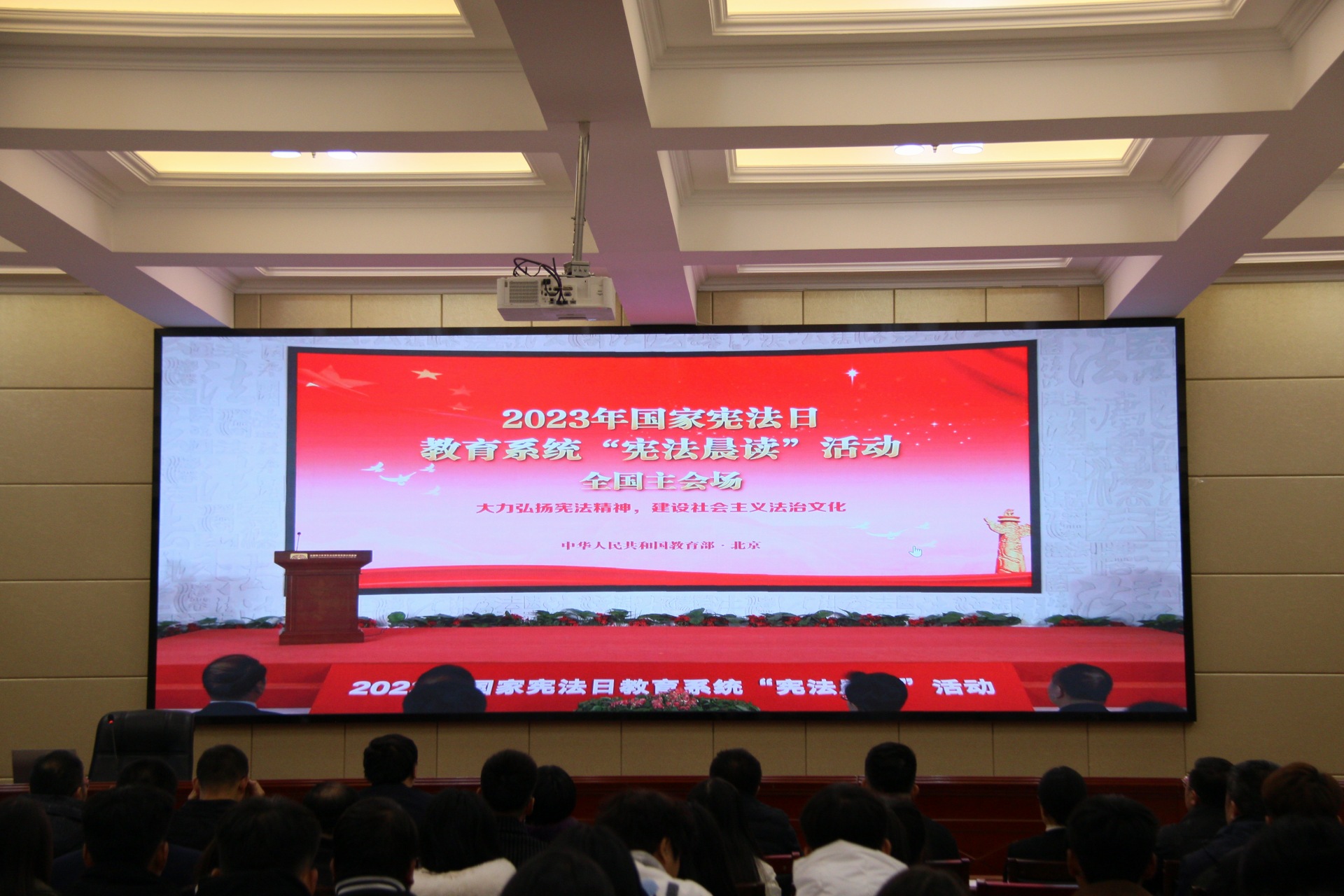 2023年12月4日是第十個(gè)國家憲法日,為深入學(xué)習(xí)貫徹黨的二十大精神,貫徹落實(shí)習(xí)近平法治思想和習(xí)近平總書記關(guān)于憲法法治教育的重要指示精神,營造法治校園氛圍,弘揚(yáng)憲法精神,維護(hù)憲法權(quán)威,培育學(xué)生的憲法意識、國家意識、規(guī)則意識。學(xué)校在行樹樓北報(bào)告廳開展“大力弘揚(yáng)憲法精神,建設(shè)社會主義法治文化”憲法晨讀活動(dòng)。黨委委員、副校長何毅參加活動(dòng)。