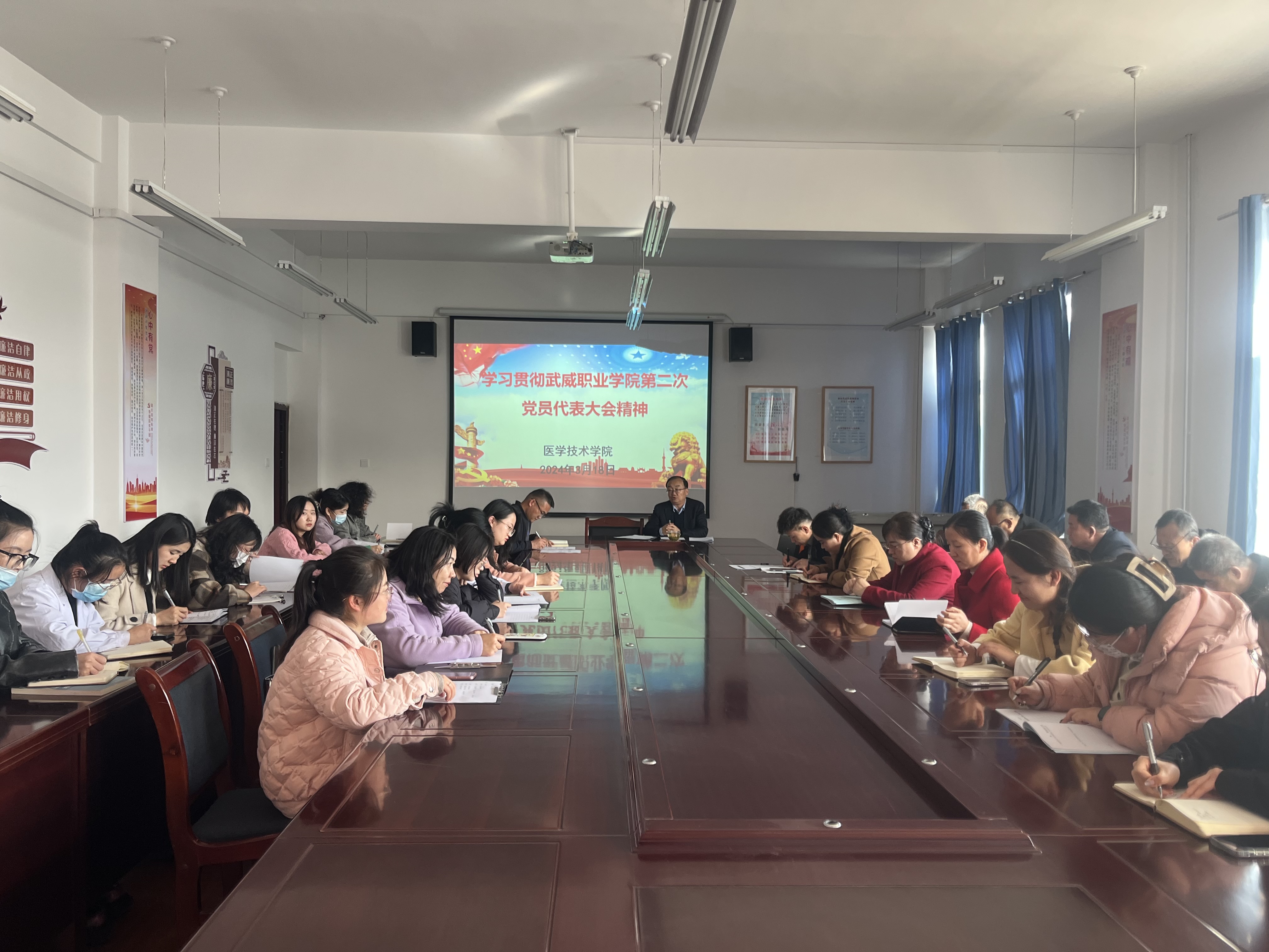 3月13日,中國共產(chǎn)黨武威職業(yè)學(xué)院第二次代表大會在我校召開。為學(xué)習(xí)貫徹會議精神,3月18日下午,醫(yī)學(xué)技術(shù)學(xué)院召開全體教職工會議傳達(dá)學(xué)校第二次代表大會精神,會議以“學(xué)習(xí)貫徹中國共產(chǎn)黨武威職業(yè)學(xué)院第二次代表大會精神”為主題,結(jié)合醫(yī)學(xué)技術(shù)學(xué)院實際提出落實舉措。